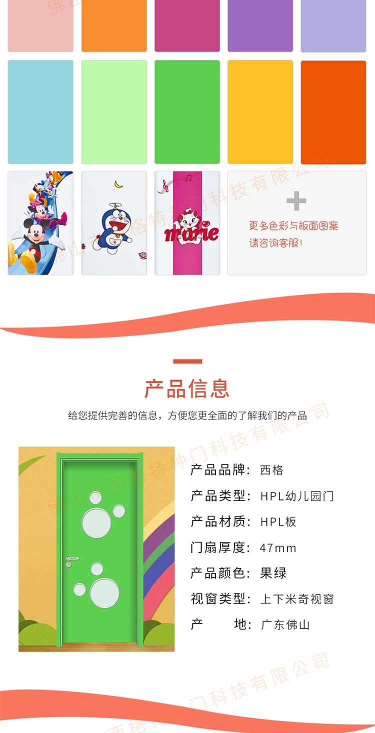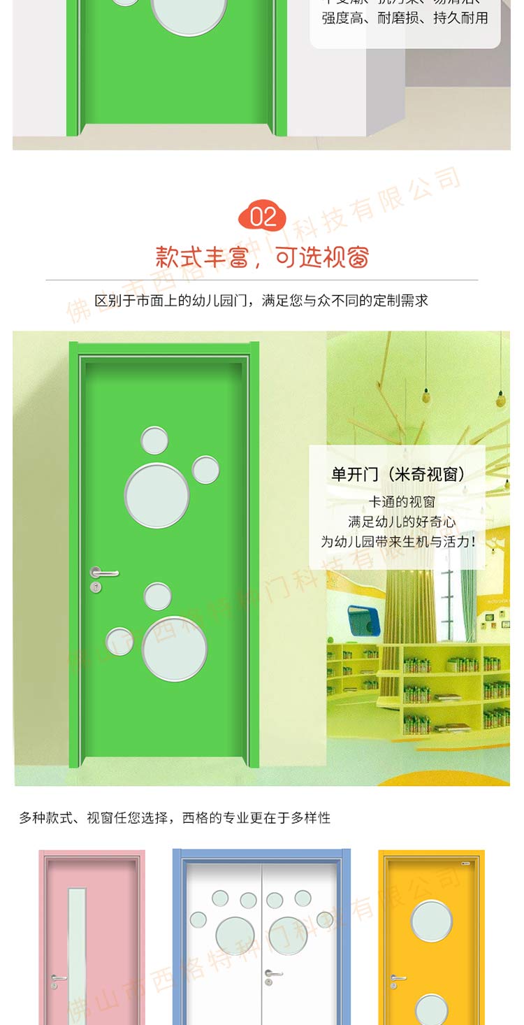 產品簡介:chnsige西格特種門,專業生產幼兒園門,木質幼兒園門,幼兒園木門,幼兒園教室門,多鐘款式、顏色,尺寸可定制。
