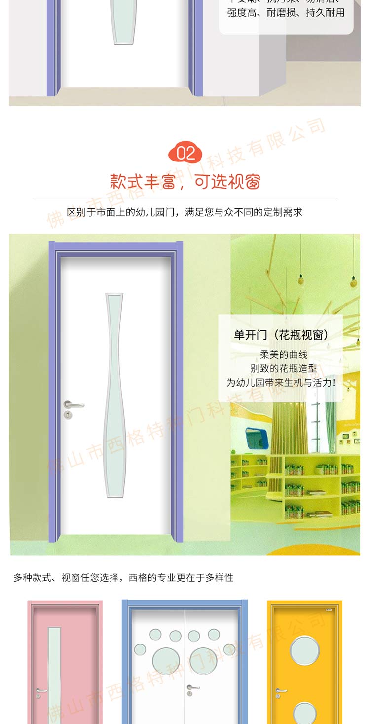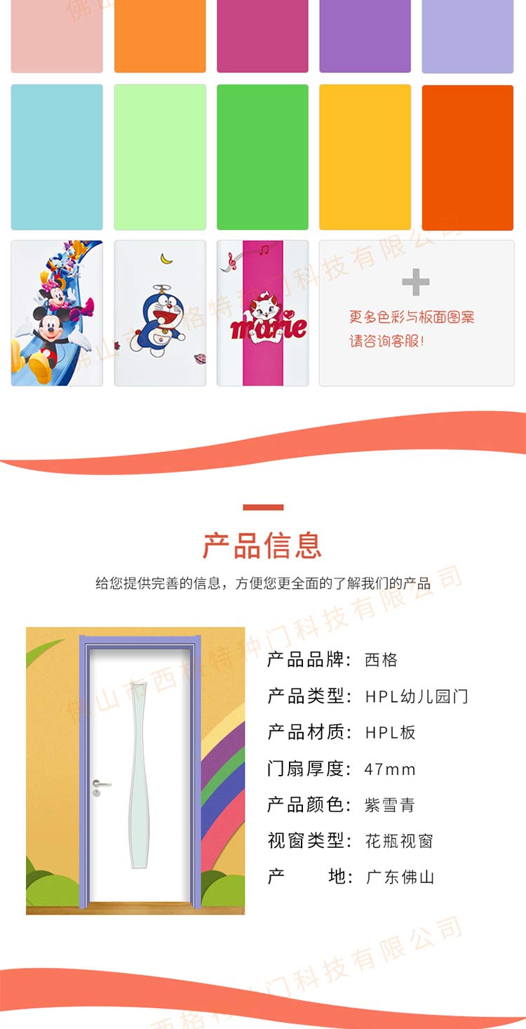 產品簡介:chnsige西格特種門,專業生產幼兒園門,木質幼兒園門,幼兒園木門,幼兒園教室門,多鐘款式、顏色,尺寸可定制。
