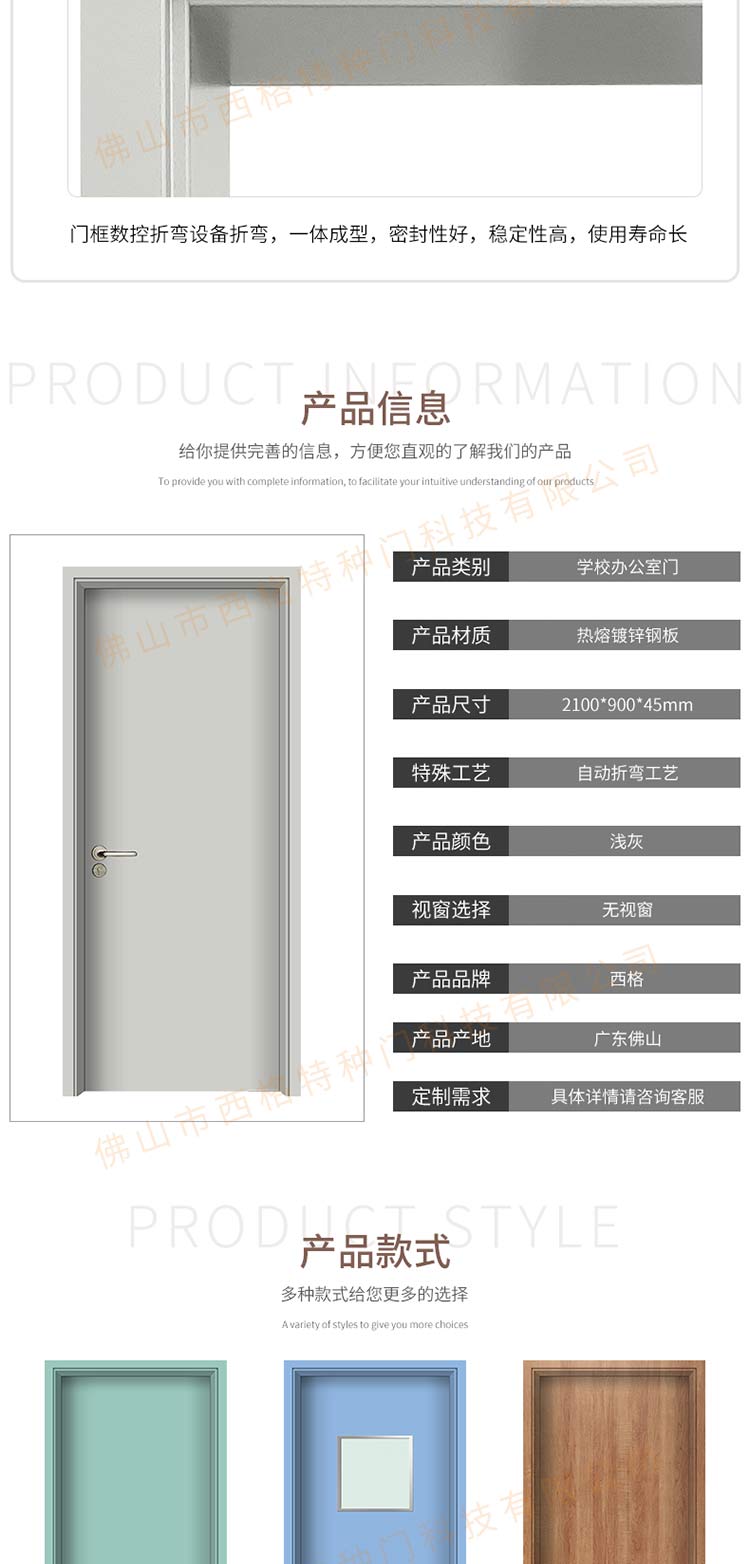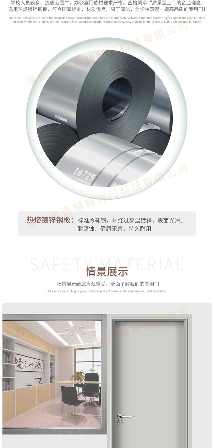 產品簡介:chnsige西格特種門,專業生產學校門,學校教室門,學校辦公室門,學校鋼質門,鋼質學校門,多鐘款式、顏色,尺寸可定制。