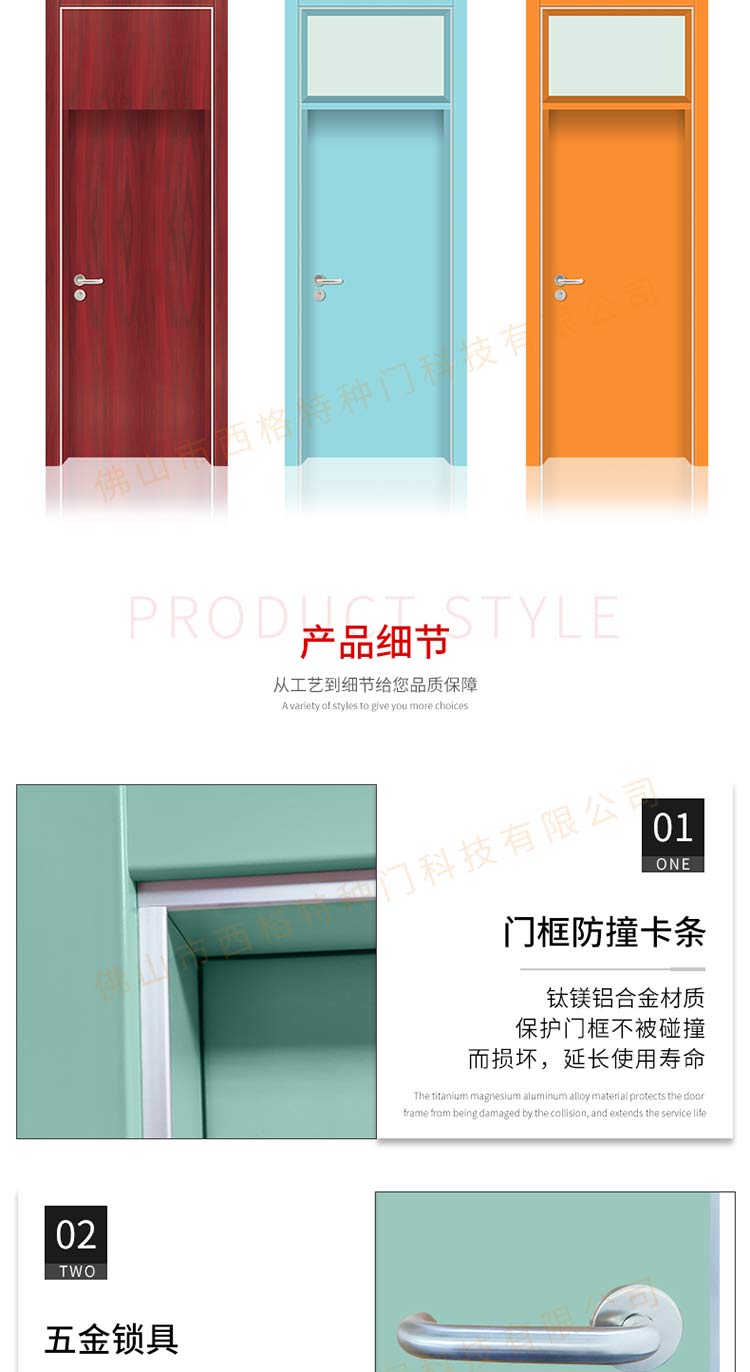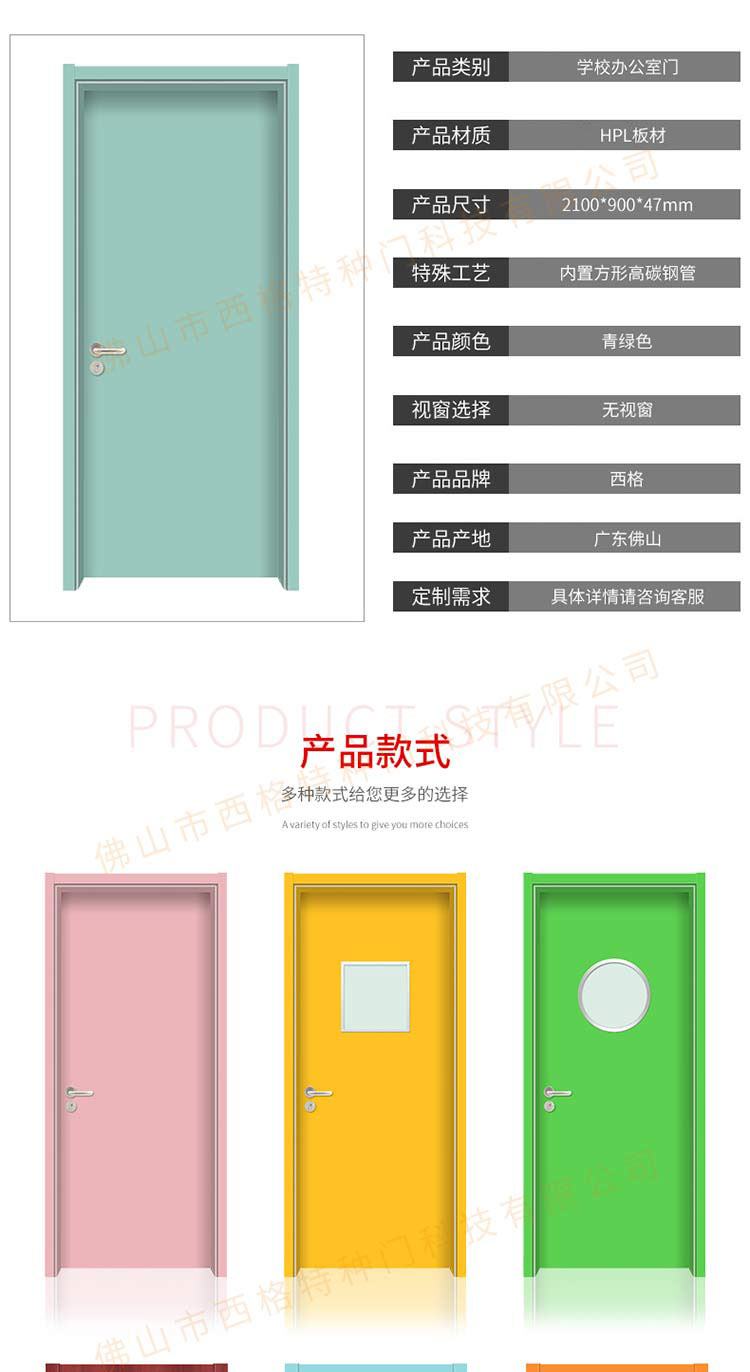 產品簡介:chnsige西格特種門,專業生產學校門,學校教室門,學校辦公室門,學校木門,木質學校門,多鐘款式、顏色,尺寸可定制。