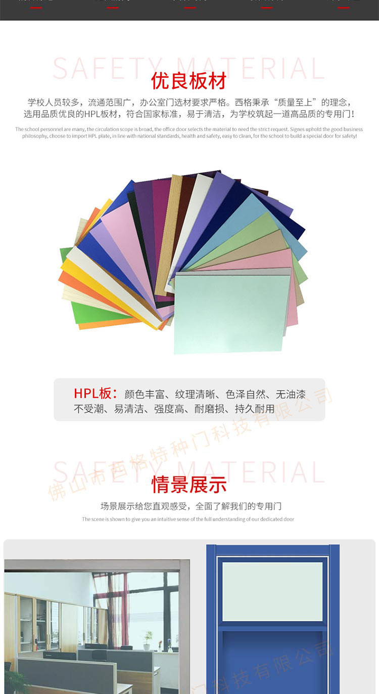 產(chǎn)品簡(jiǎn)介:chnsige西格特種門(mén),專業(yè)生產(chǎn)學(xué)校門(mén),學(xué)校教室門(mén),學(xué)校辦公室門(mén),學(xué)校木門(mén),木質(zhì)學(xué)校門(mén),多鐘款式、顏色,尺寸可定制。