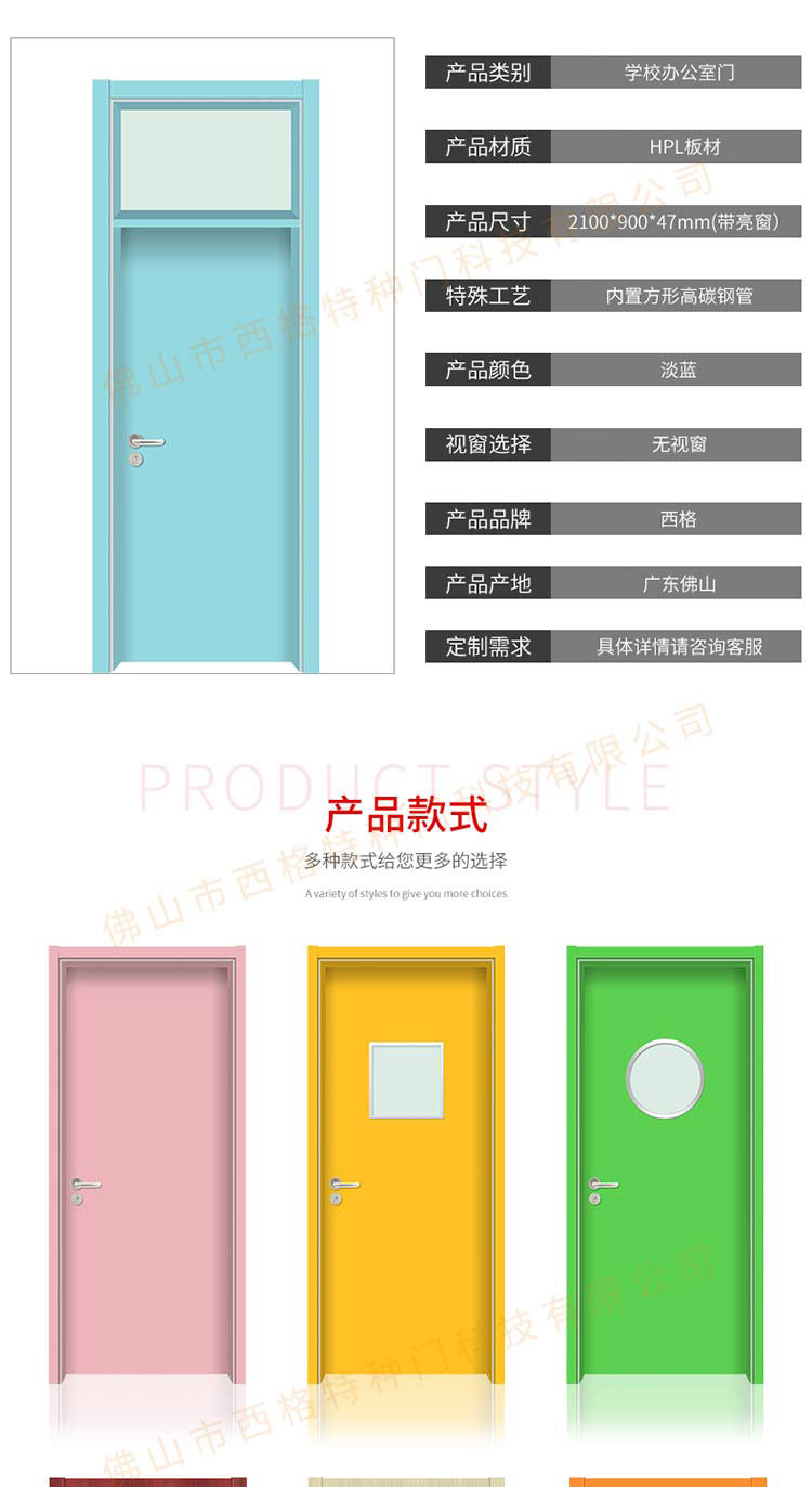 產品簡介:chnsige西格特種門,專業生產學校門,學校教室門,學校辦公室門,學校木門,木質學校門,多鐘款式、顏色,尺寸可定制。
