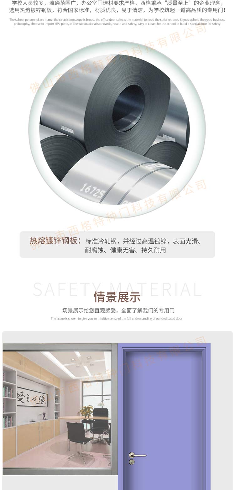 產品簡介:chnsige西格特種門,專業生產學校門,學校教室門,學校辦公室門,學校鋼質門,鋼質學校門,多鐘款式、顏色,尺寸可定制。