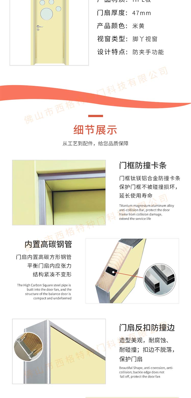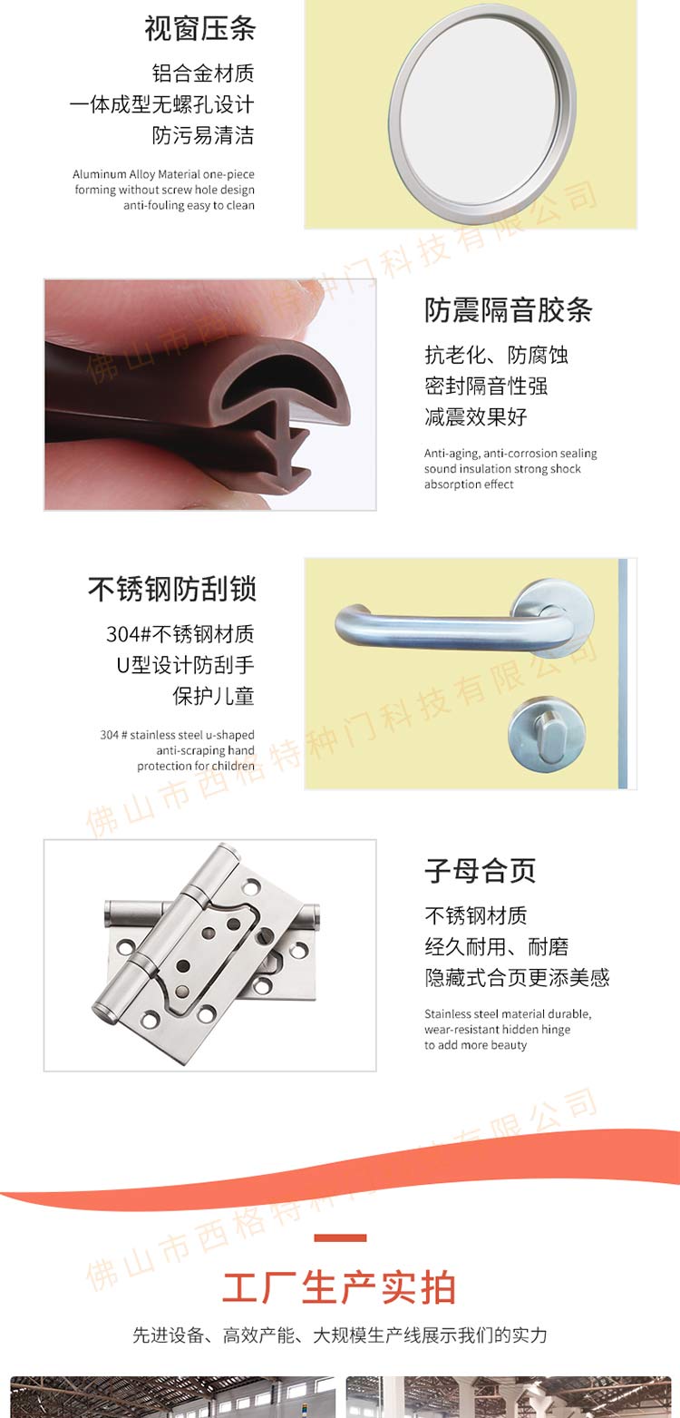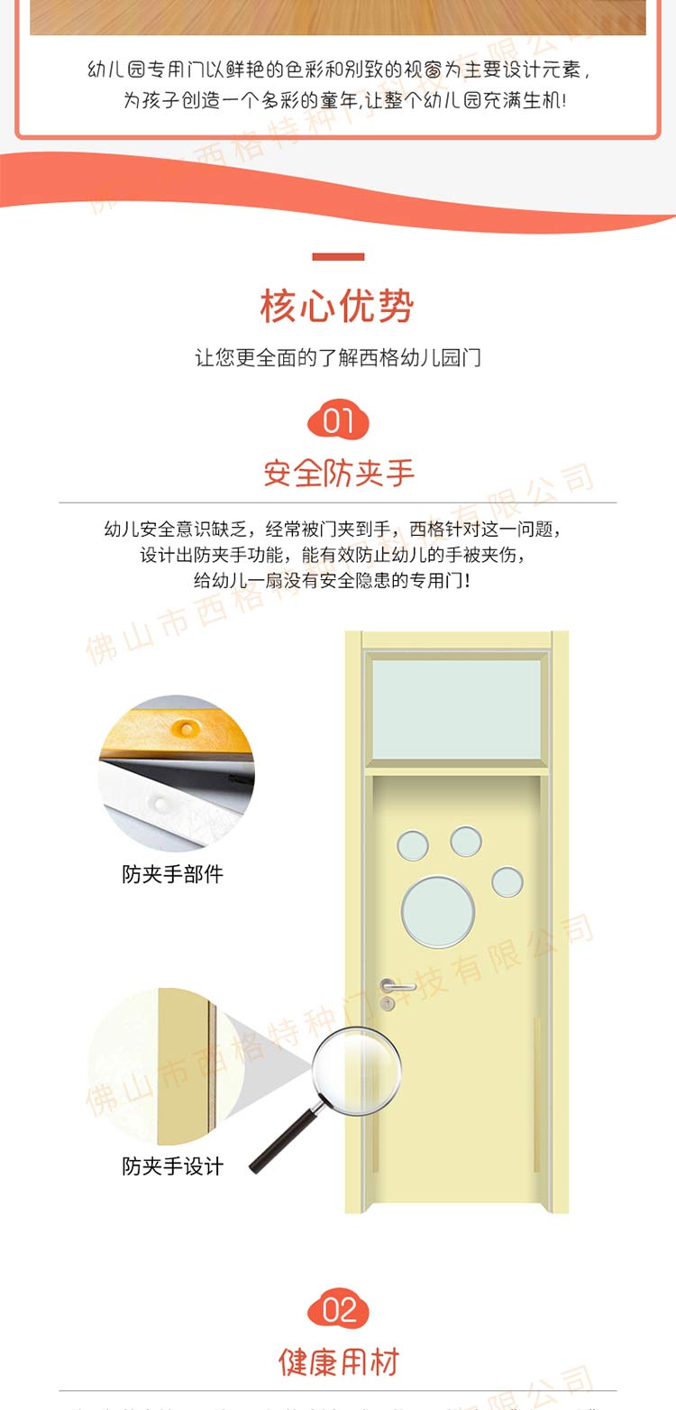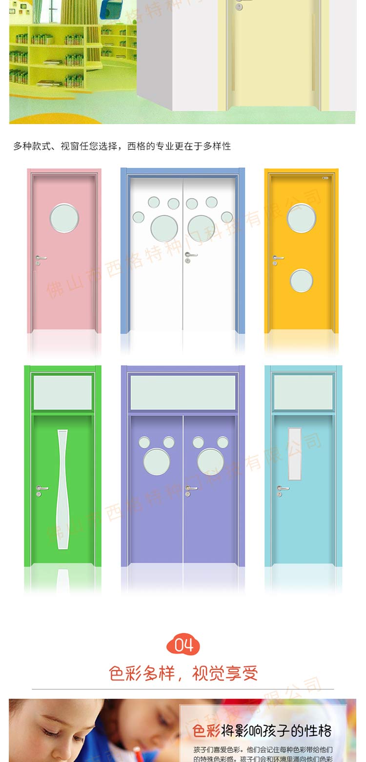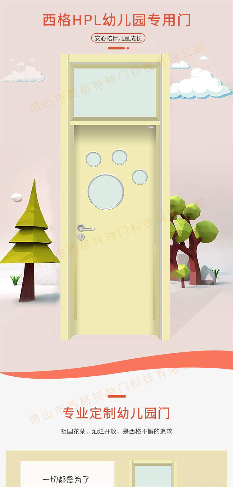 產(chǎn)品簡介:chnsige西格特種門,專業(yè)生產(chǎn)幼兒園門,防夾手幼兒園門,多鐘款式、顏色,尺寸可定制。