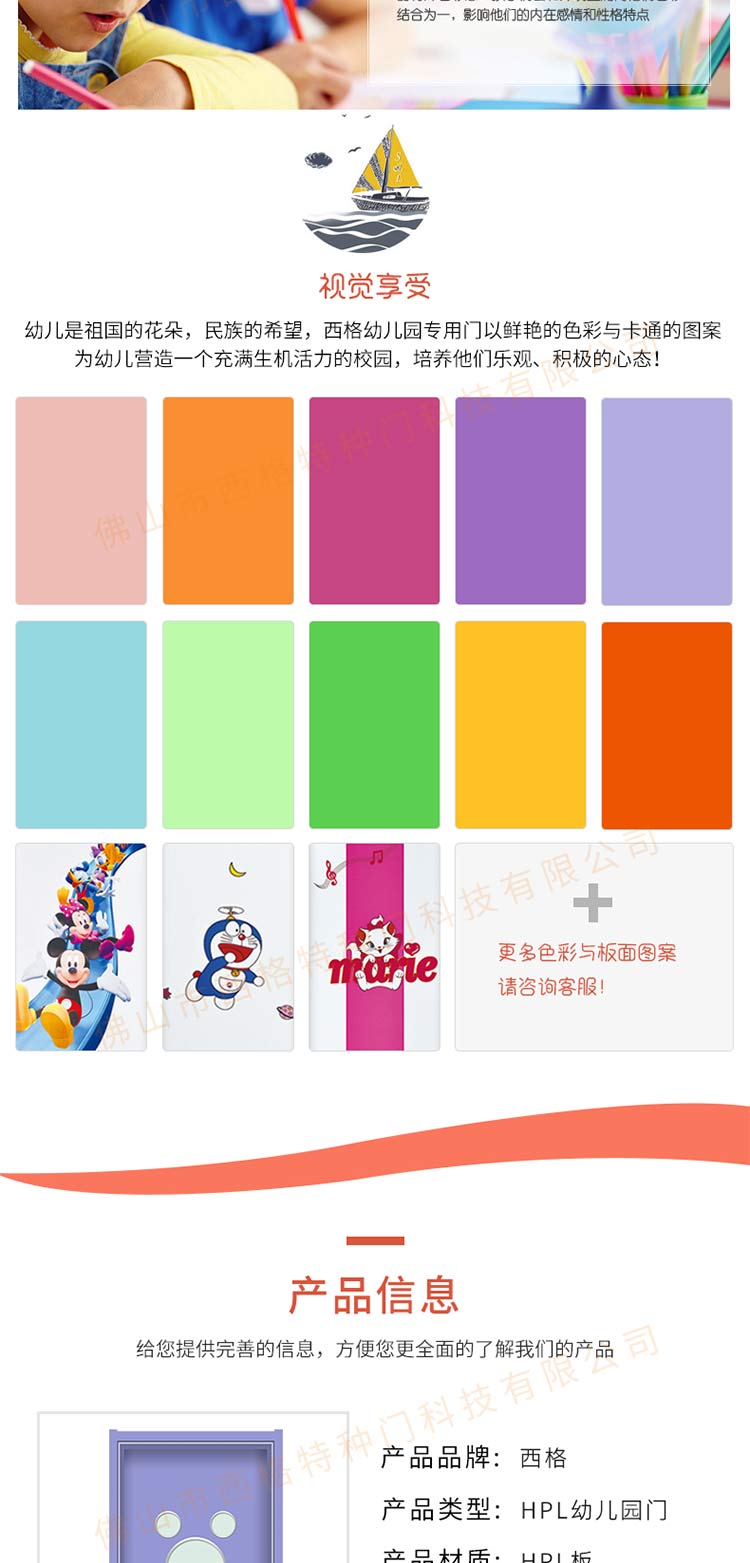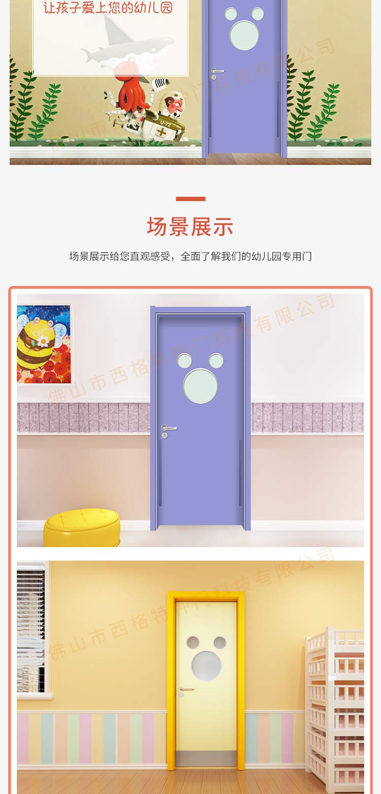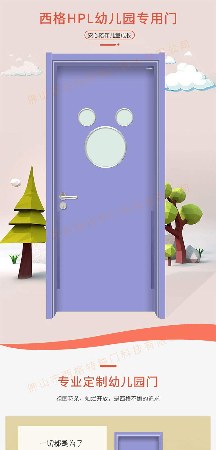 產(chǎn)品簡介:chnsige西格特種門,專業(yè)生產(chǎn)幼兒園門,防夾手幼兒園門,多鐘款式、顏色,尺寸可定制。