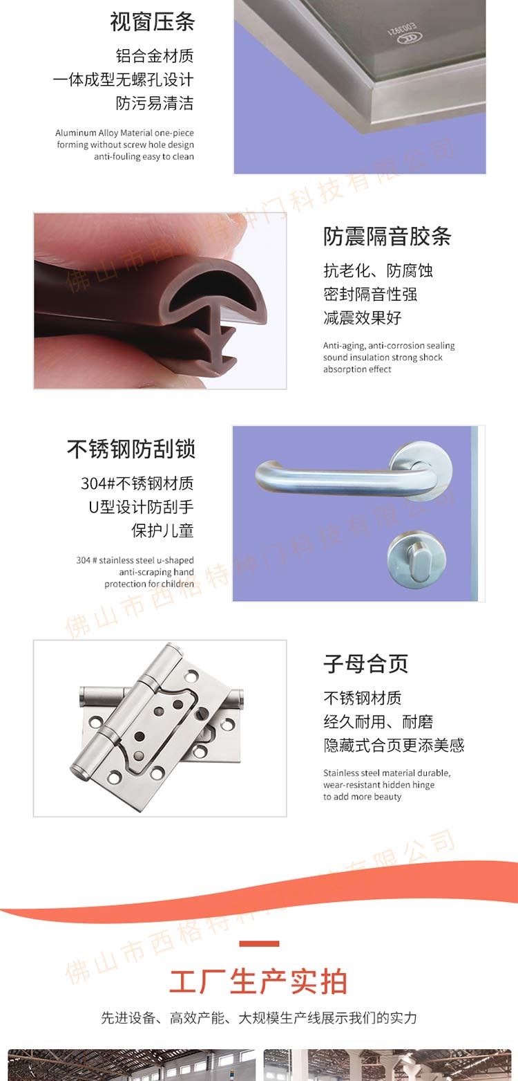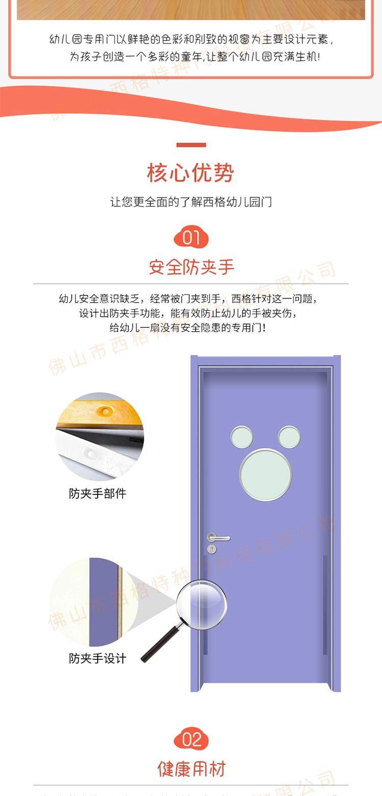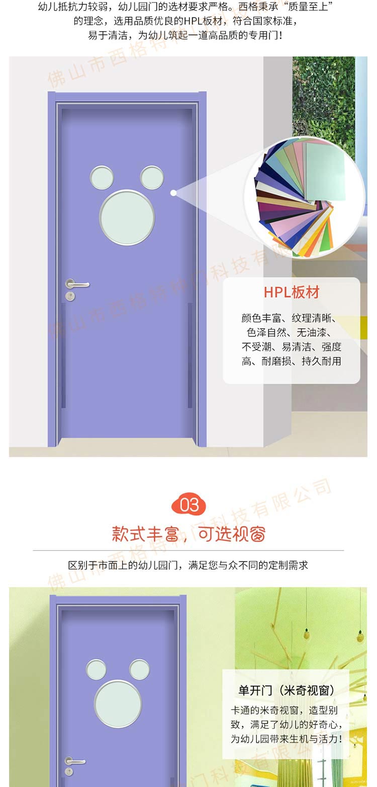 產(chǎn)品簡介:chnsige西格特種門,專業(yè)生產(chǎn)幼兒園門,防夾手幼兒園門,多鐘款式、顏色,尺寸可定制。