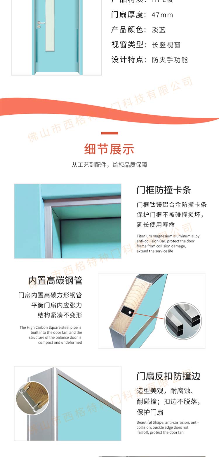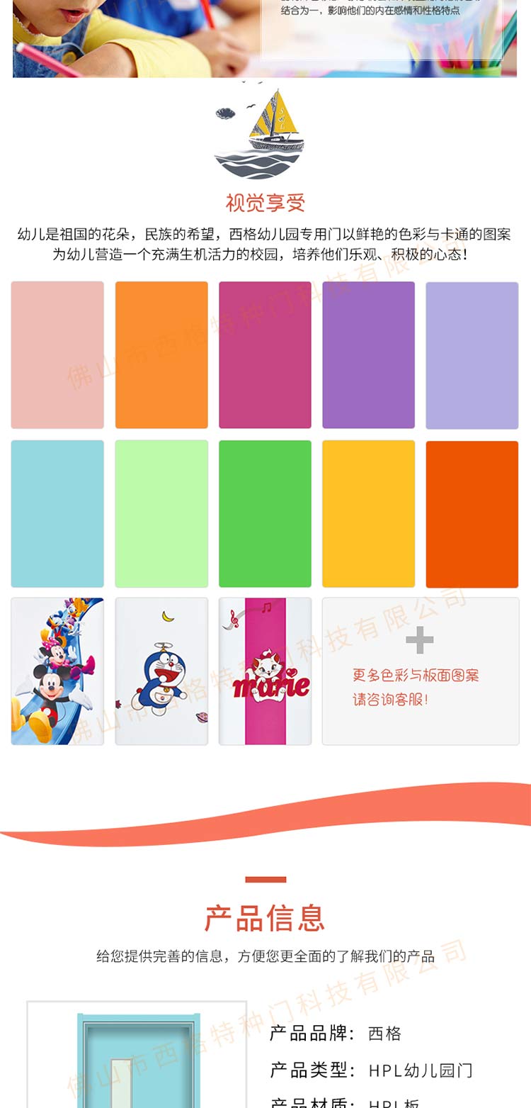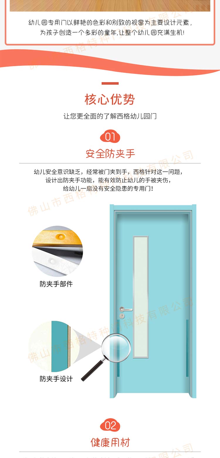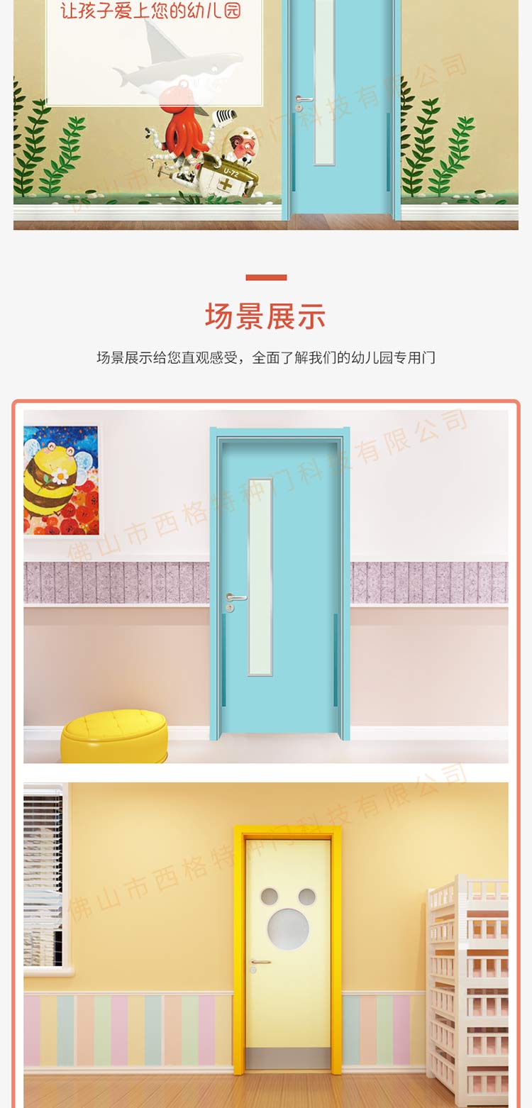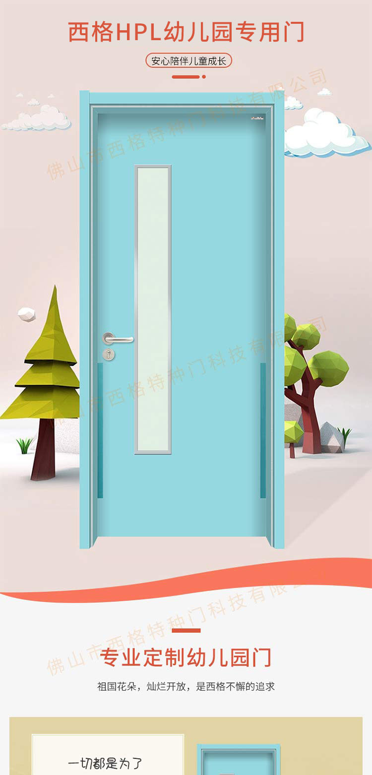 產(chǎn)品簡(jiǎn)介:chnsige西格特種門,專業(yè)生產(chǎn)幼兒園門,防夾手幼兒園門,多鐘款式、顏色,尺寸可定制。