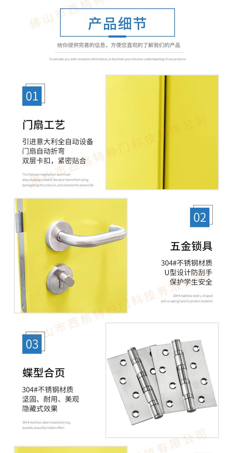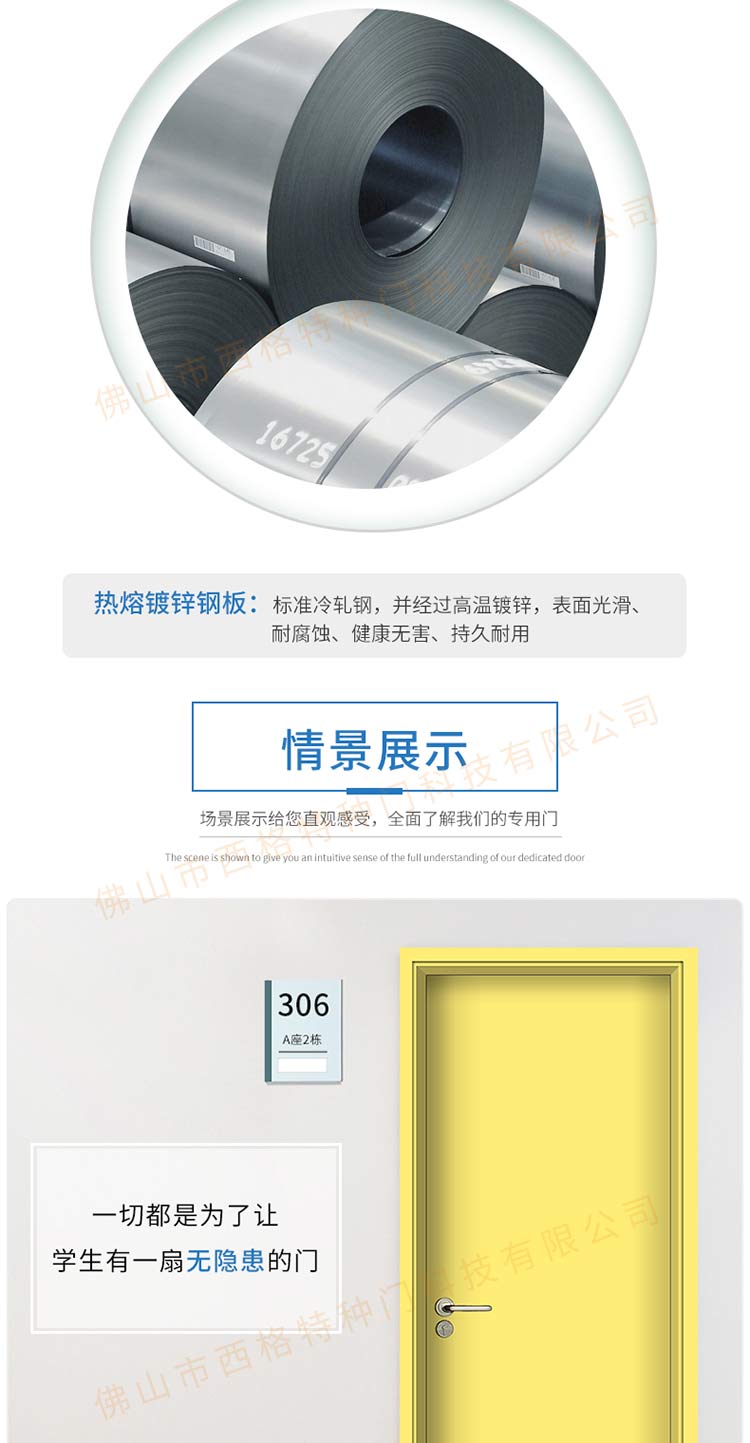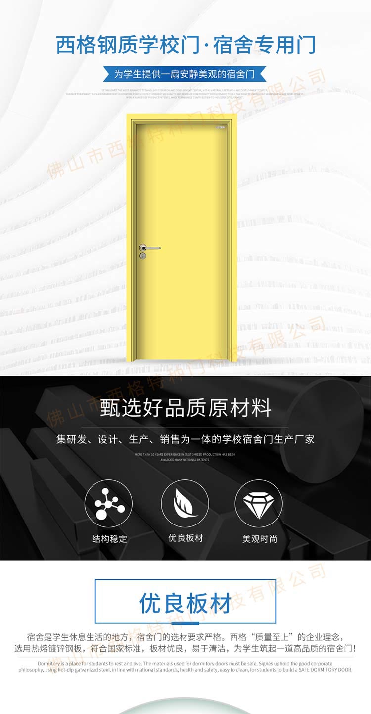 產(chǎn)品簡介:chnsige西格特種門,專業(yè)生產(chǎn)學(xué)校門,學(xué)校宿舍門,學(xué)校公寓門,學(xué)校宿舍門,鋼質(zhì)宿舍門,多鐘款式、顏色,尺寸可定制。