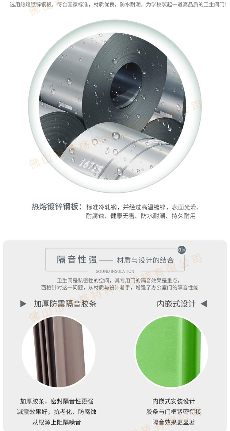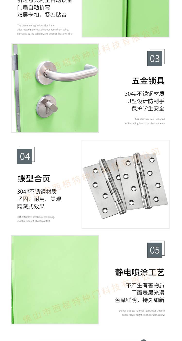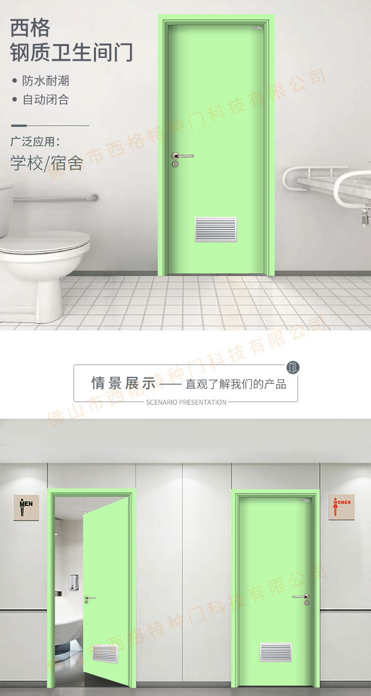 產品簡介:chnsige西格特種門,專業生產學校門,學校衛生間門,學校洗手間門,鋼質洗手間門,多鐘款式、顏色,尺寸可定制。
