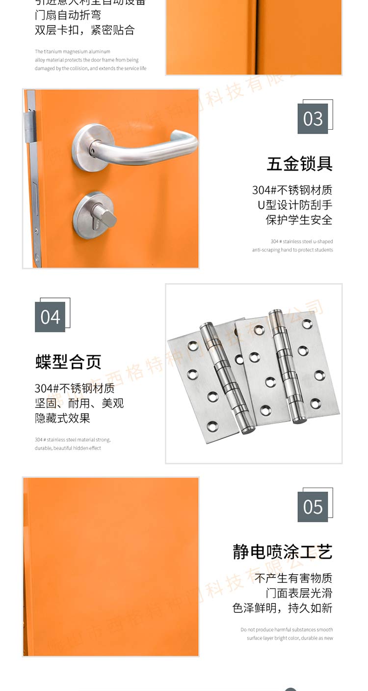 產品簡介:chnsige西格特種門,專業生產學校門,學校衛生間門,學校洗手間門,鋼質洗手間門,多鐘款式、顏色,尺寸可定制。