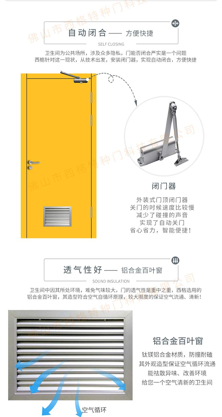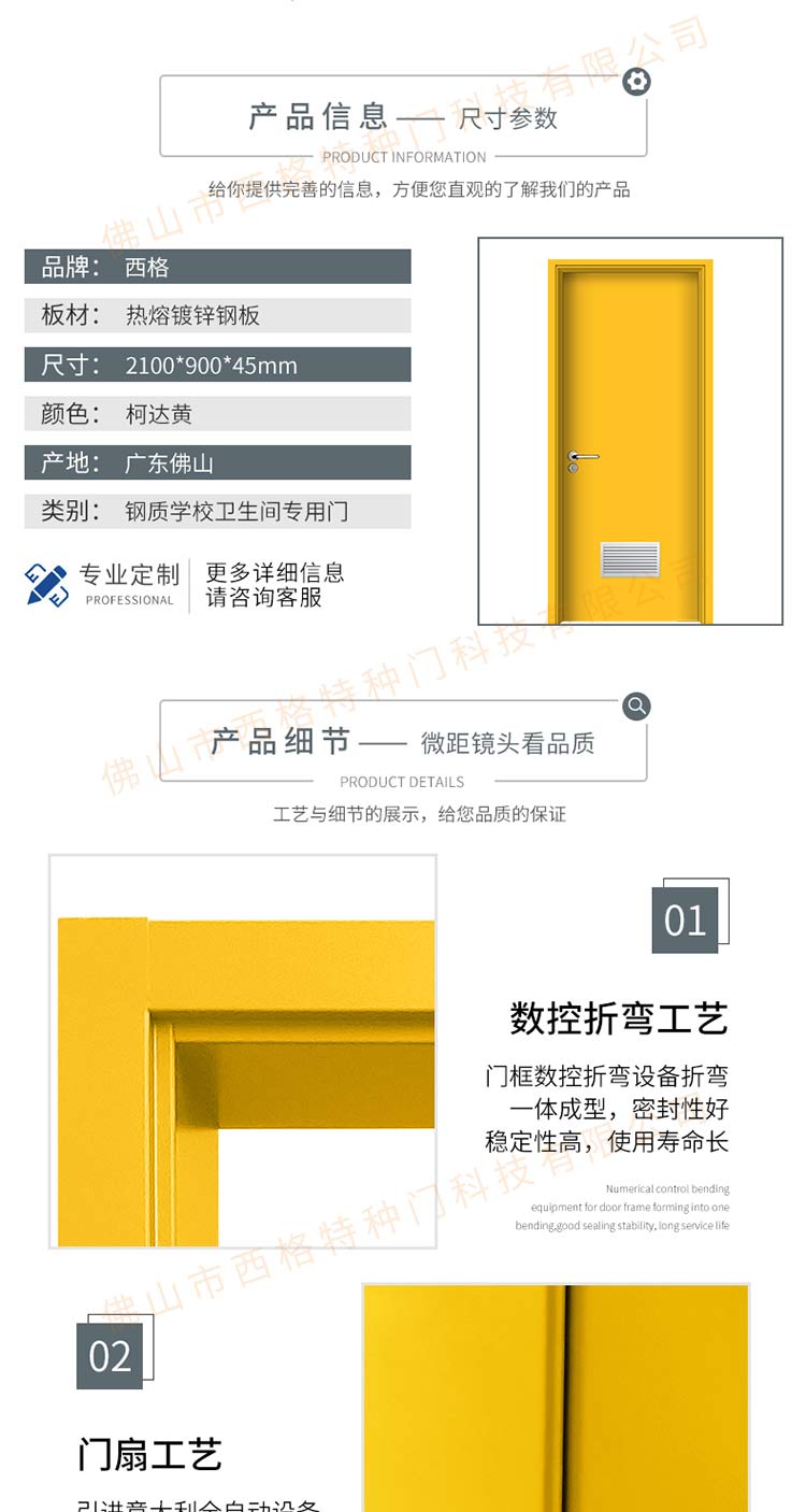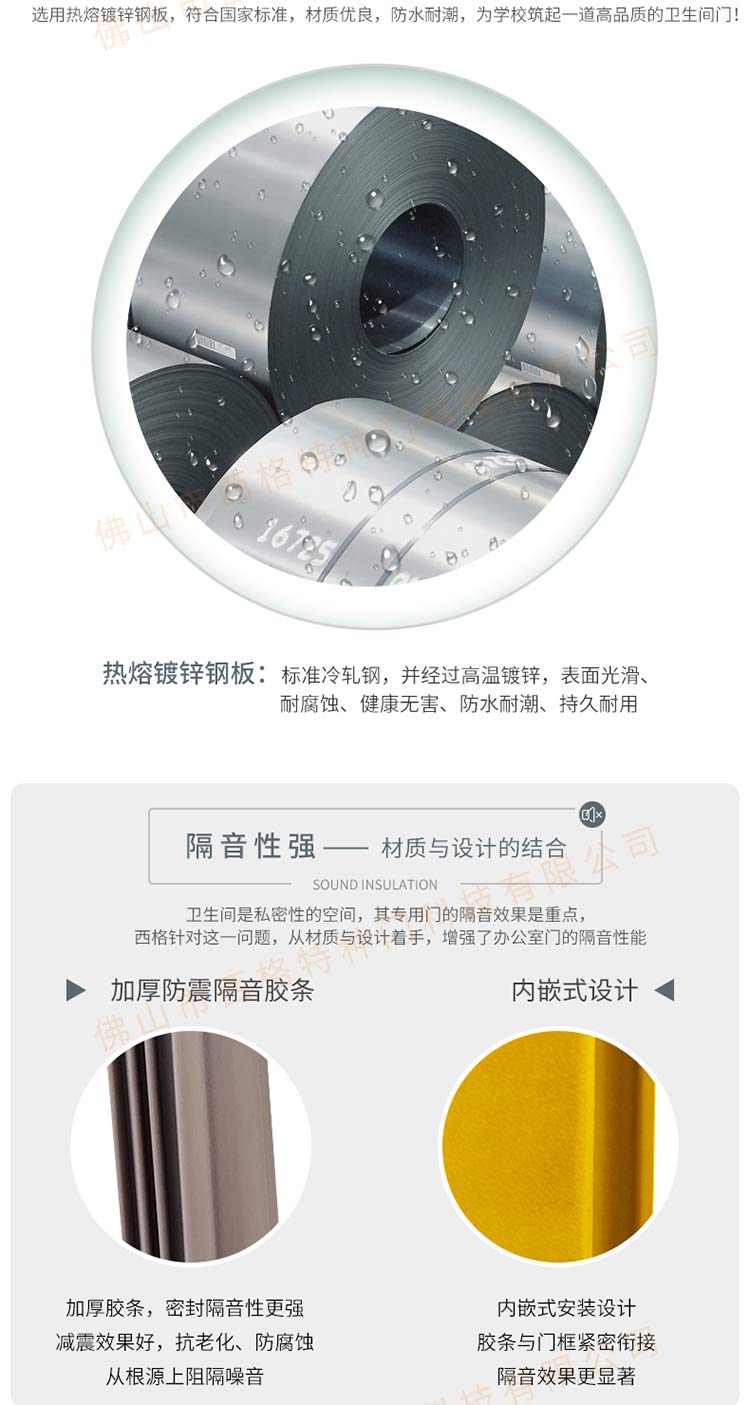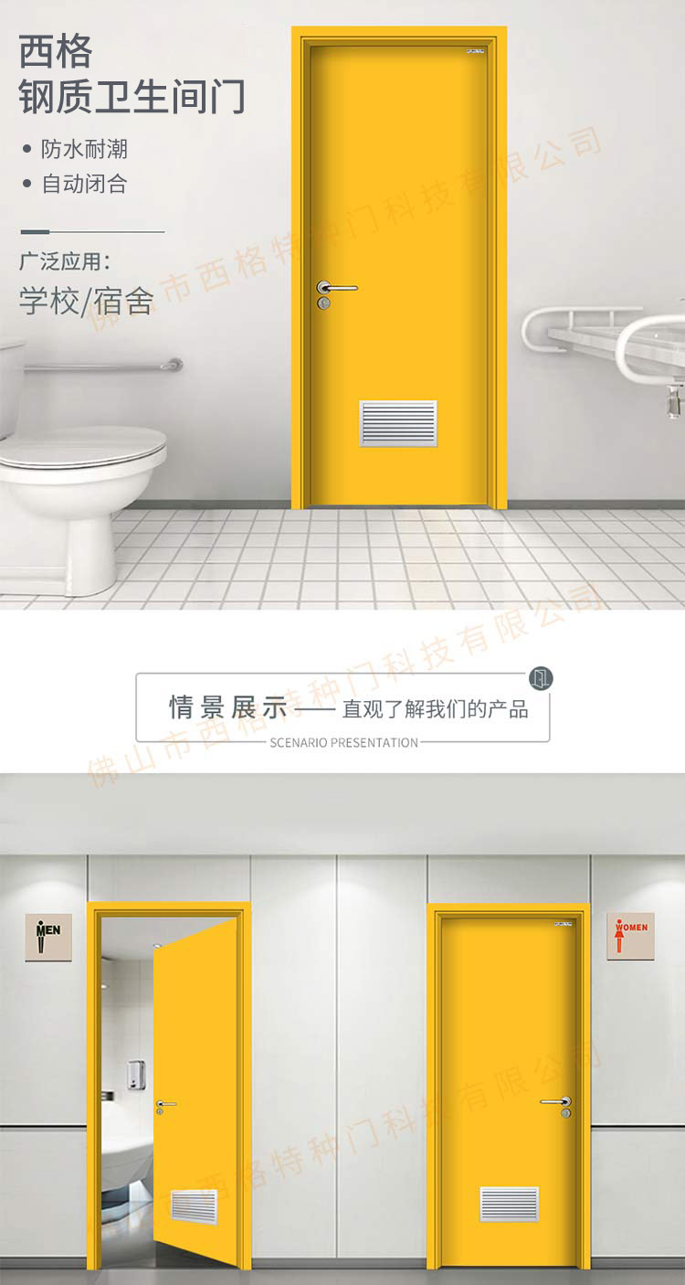 產品簡介:chnsige西格特種門,專業生產學校門,學校衛生間門,學校洗手間門,鋼質洗手間門,多鐘款式、顏色,尺寸可定制。