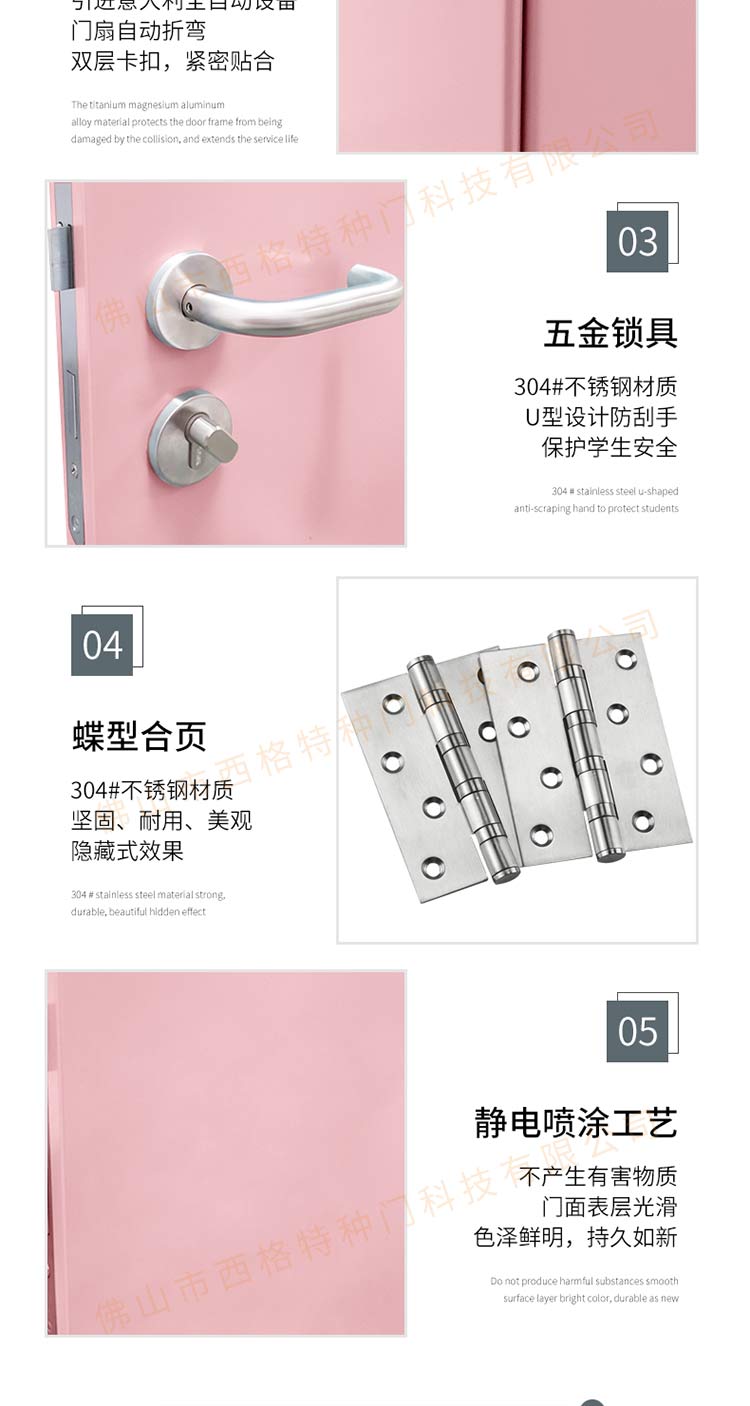 產(chǎn)品簡(jiǎn)介:chnsige西格特種門(mén),專(zhuān)業(yè)生產(chǎn)學(xué)校門(mén),學(xué)校衛(wèi)生間門(mén),學(xué)校洗手間門(mén),鋼質(zhì)洗手間門(mén),多鐘款式、顏色,尺寸可定制。