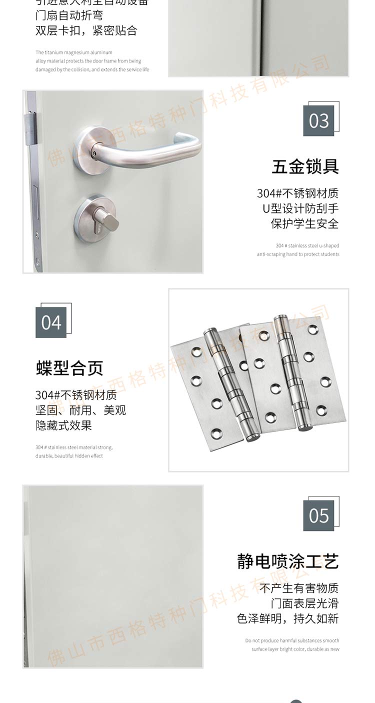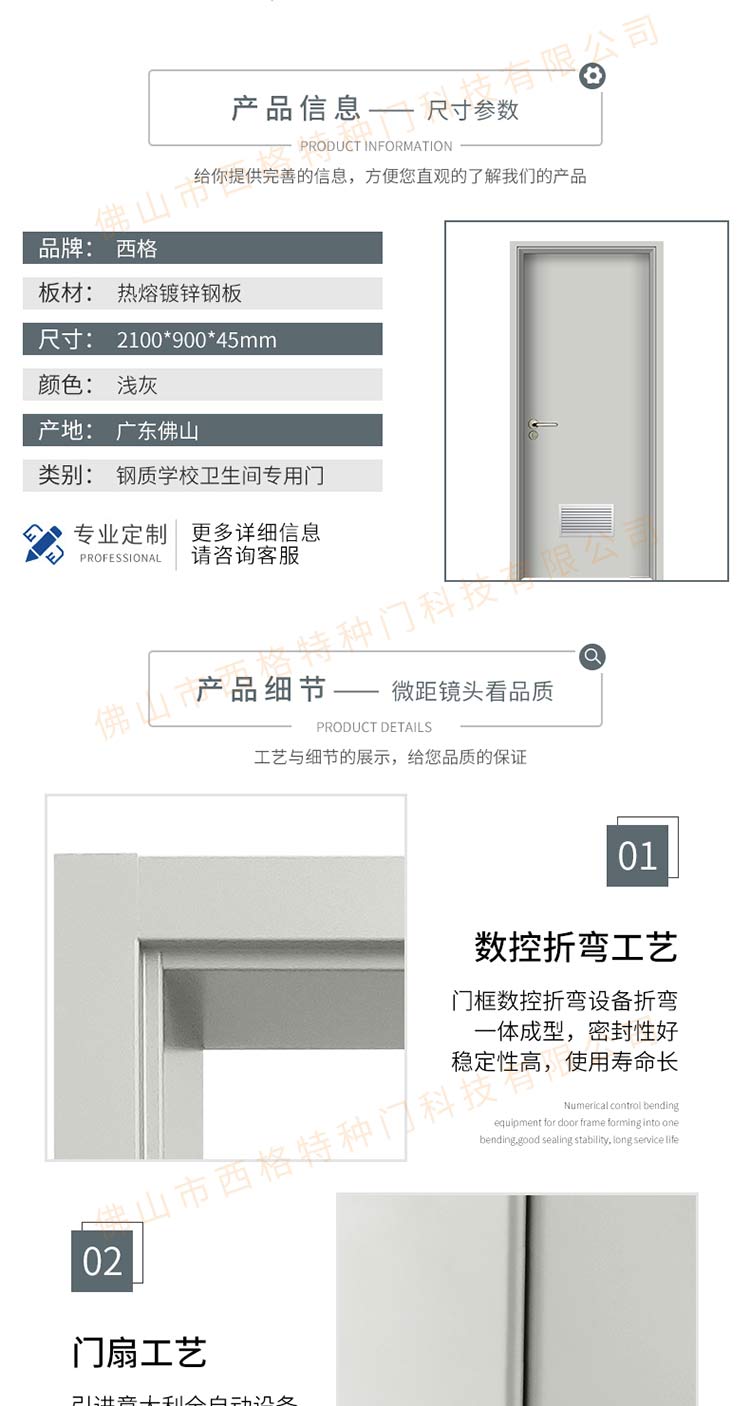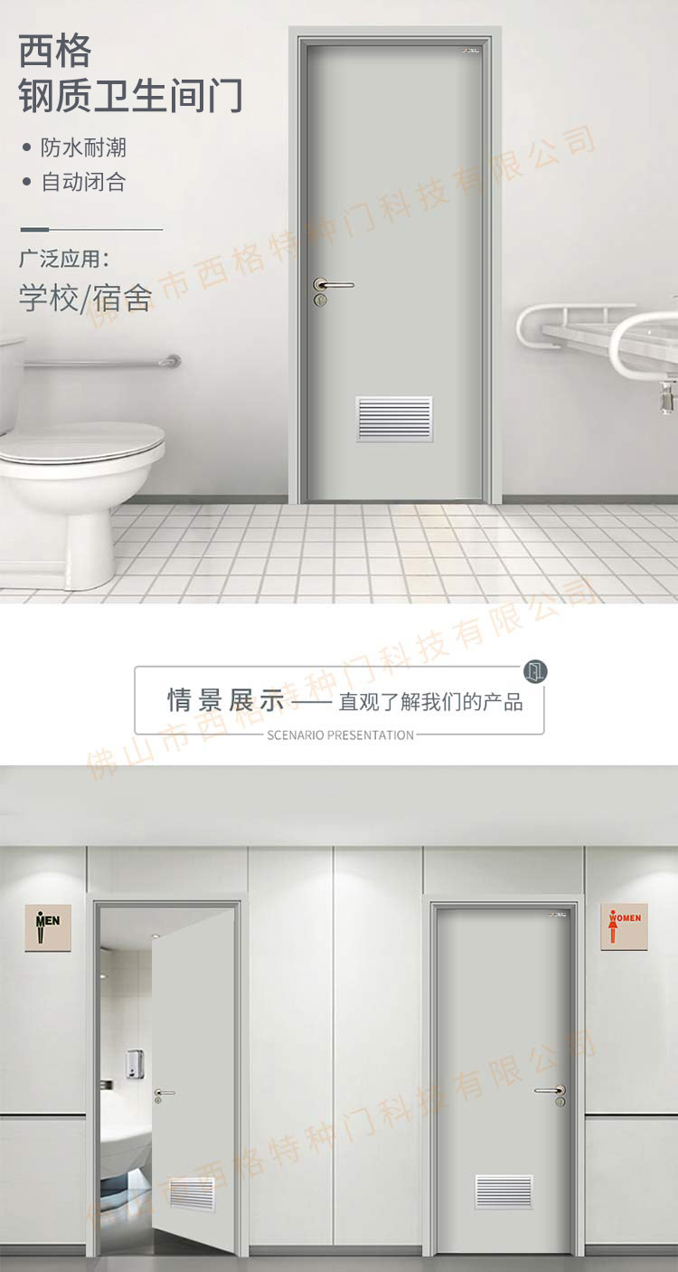 產品簡介:chnsige西格特種門,專業生產學校門,學校衛生間門,學校洗手間門,鋼質洗手間門,多鐘款式、顏色,尺寸可定制。