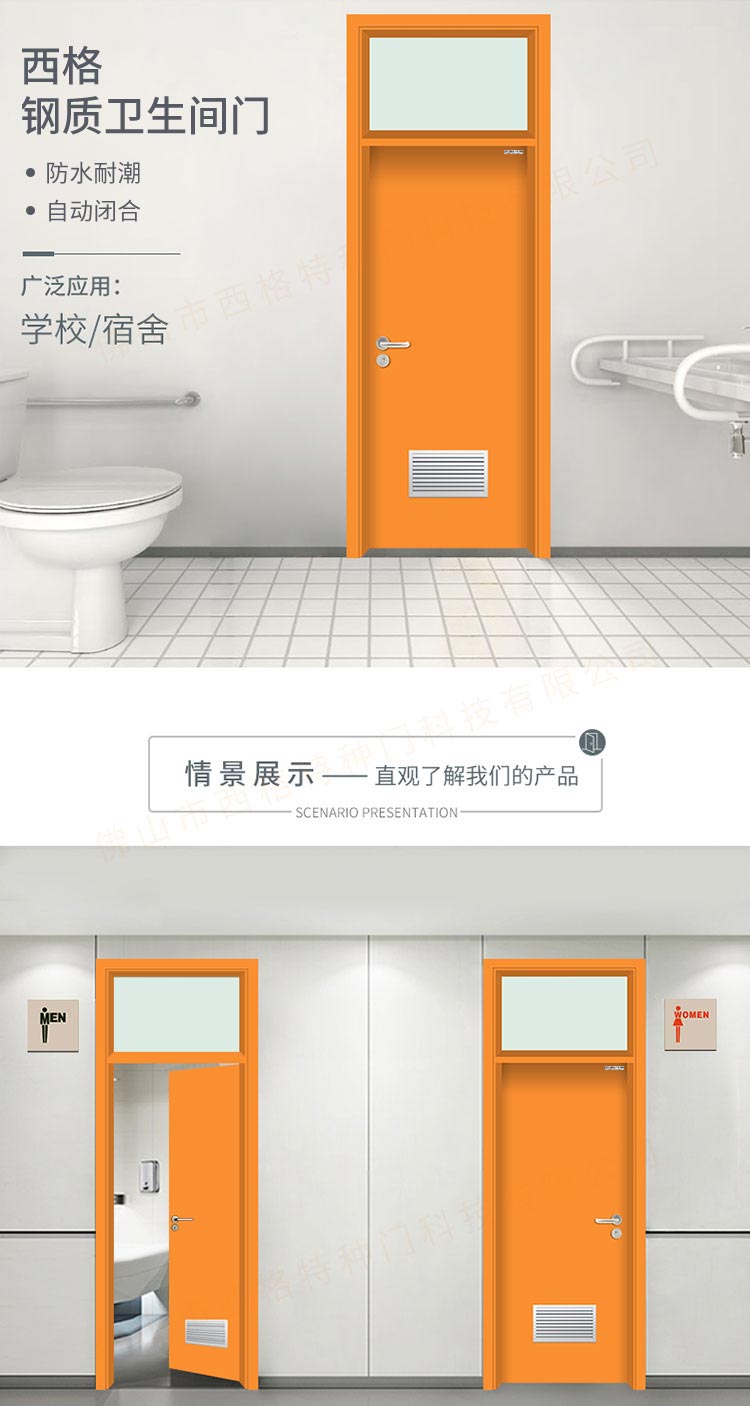 產品簡介:chnsige西格特種門,專業生產學校門,學校衛生間門,學校洗手間門,鋼質洗手間門,多鐘款式、顏色,尺寸可定制。