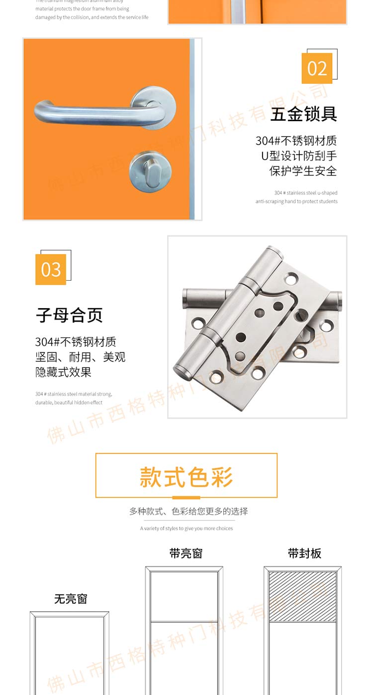 產品簡介:chnsige西格特種門,專業生產學校宿舍門,木質學校宿舍門,學校宿舍木門,學生宿舍門,多鐘款式、顏色,尺寸可定制。