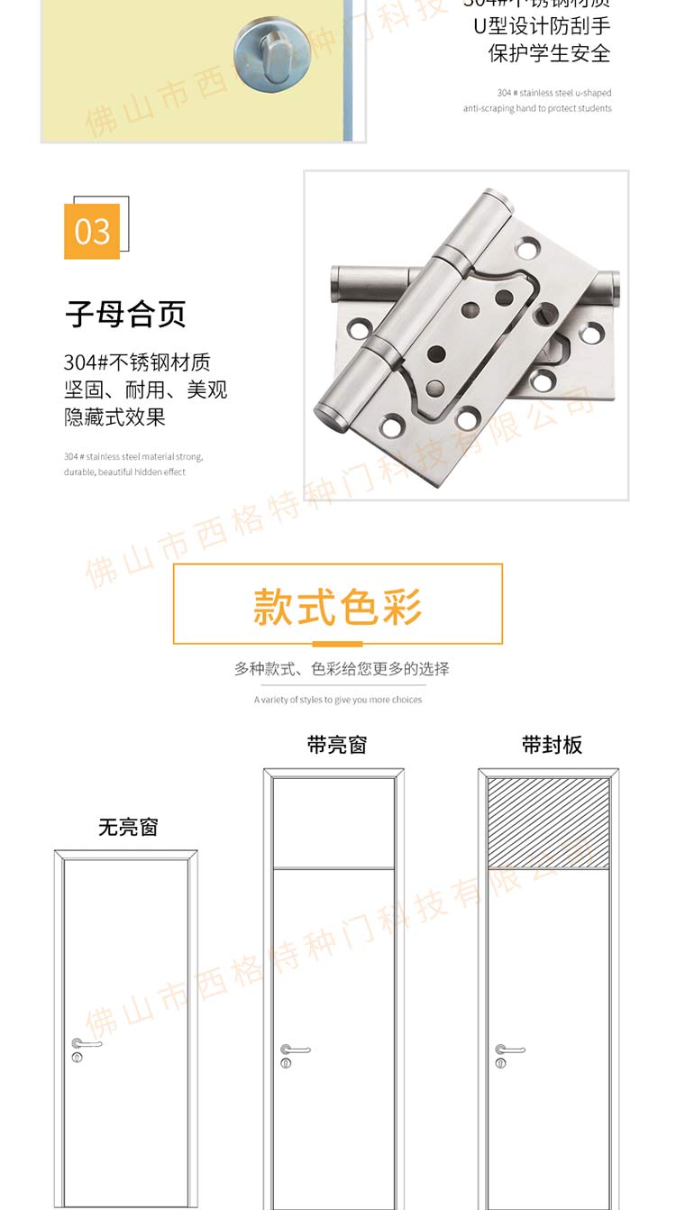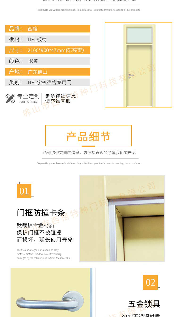 產品簡介:chnsige西格特種門,專業(yè)生產學校宿舍門,木質學校宿舍門,學校宿舍木門,學生宿舍門,多鐘款式、顏色,尺寸可定制。