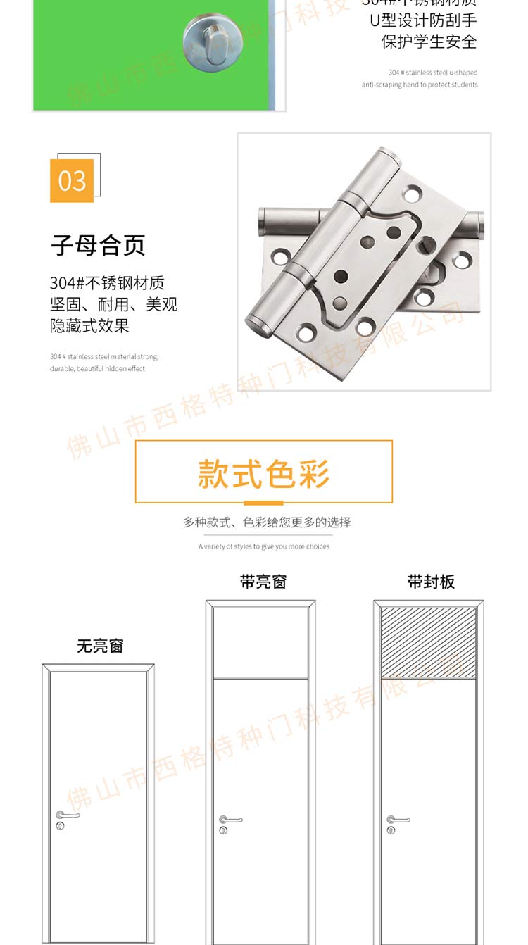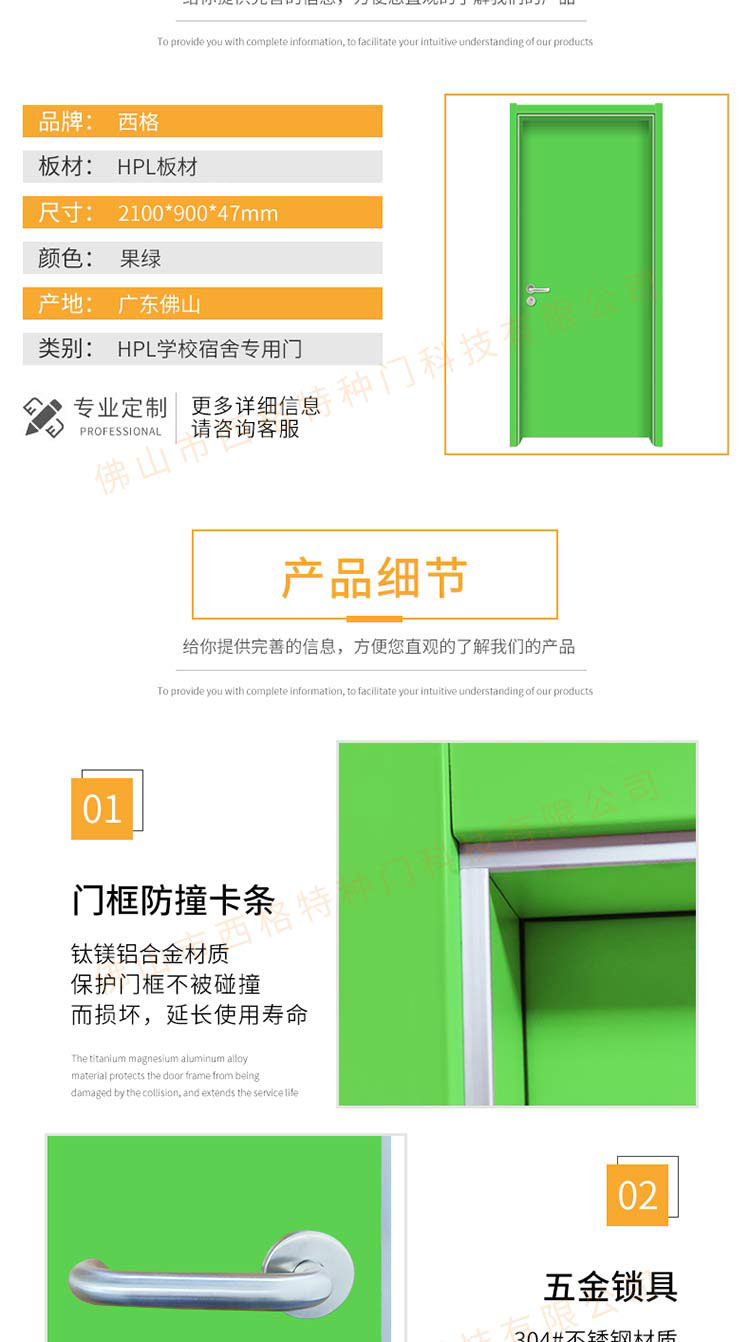 產品簡介:chnsige西格特種門,專業生產學校宿舍門,木質學校宿舍門,學校宿舍木門,學生宿舍門,多鐘款式、顏色,尺寸可定制。