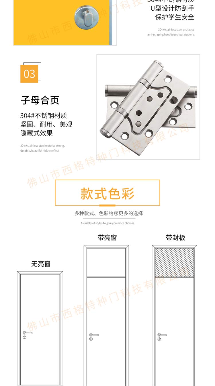 產(chǎn)品簡(jiǎn)介:chnsige西格特種門,專業(yè)生產(chǎn)學(xué)校宿舍門,木質(zhì)學(xué)校宿舍門,學(xué)校宿舍木門,學(xué)生宿舍門,多鐘款式、顏色,尺寸可定制。