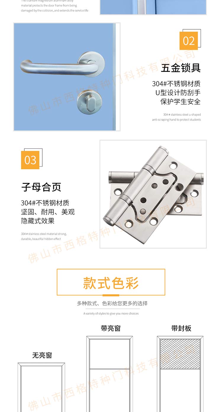 產品簡介:chnsige西格特種門,專業生產學校宿舍門,木質學校宿舍門,學校宿舍木門,學生宿舍門,多鐘款式、顏色,尺寸可定制。