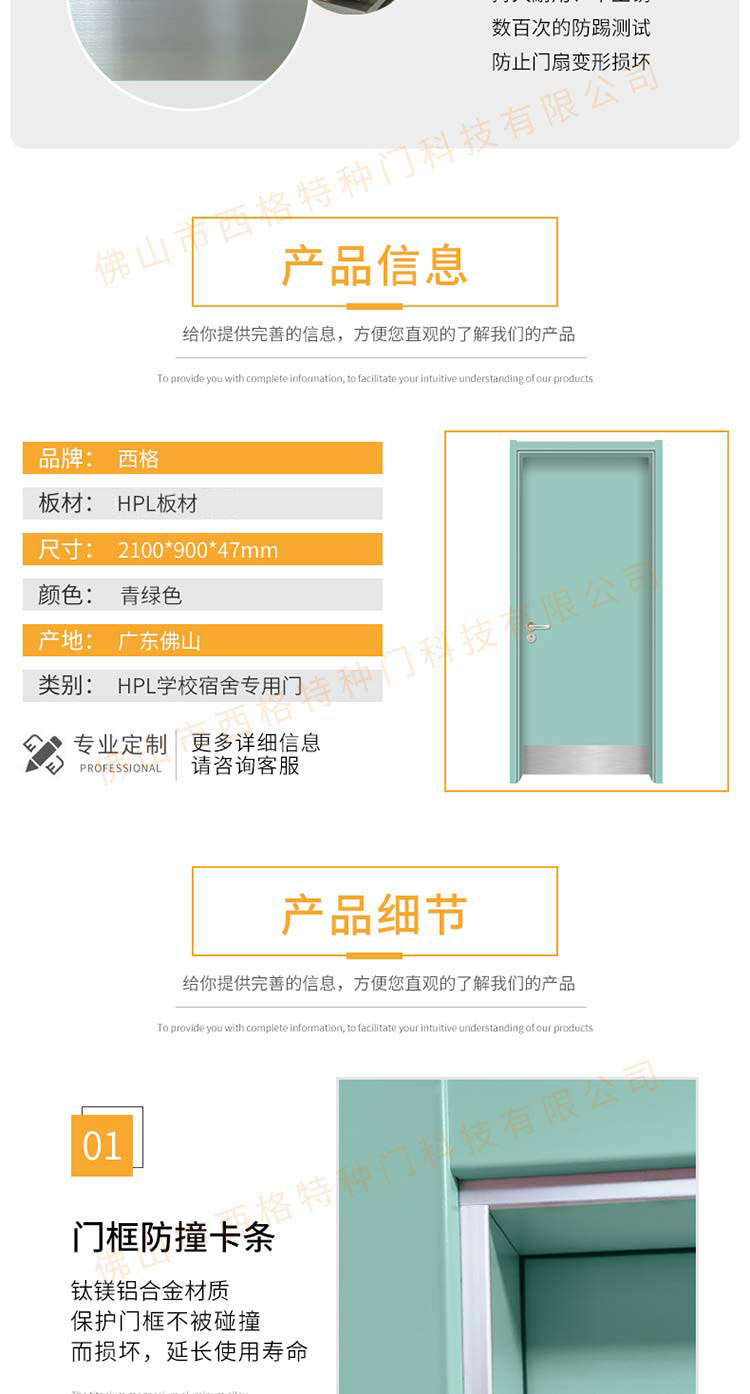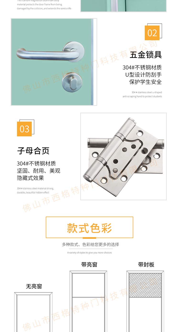 產品簡介:chnsige西格特種門,專業生產學校宿舍門,木質學校宿舍門,學校宿舍木門,學生宿舍門,多鐘款式、顏色,尺寸可定制。