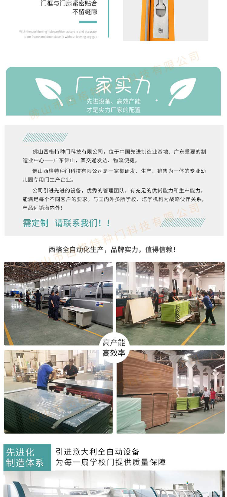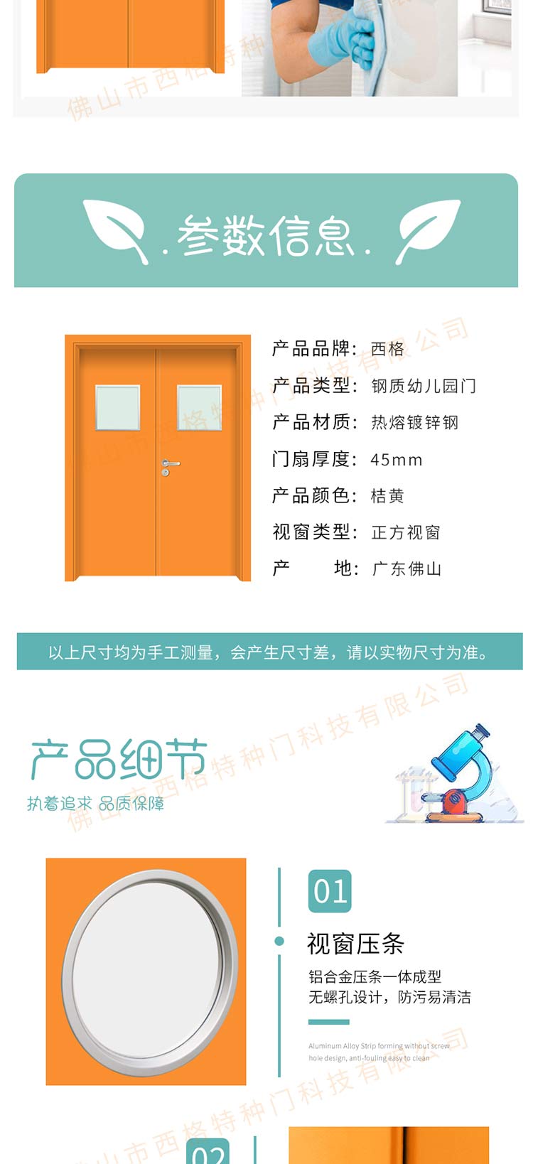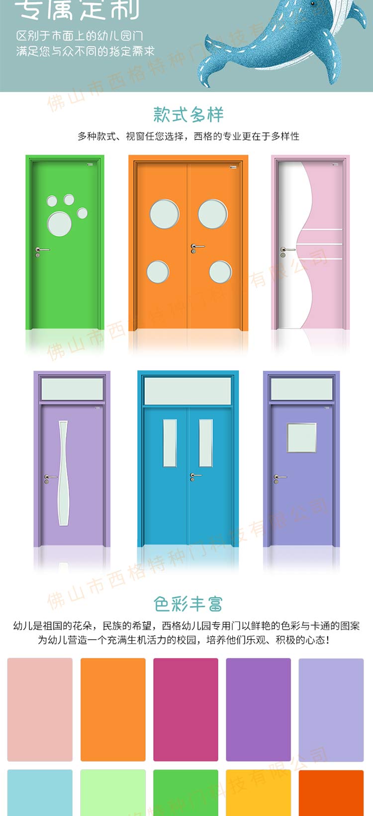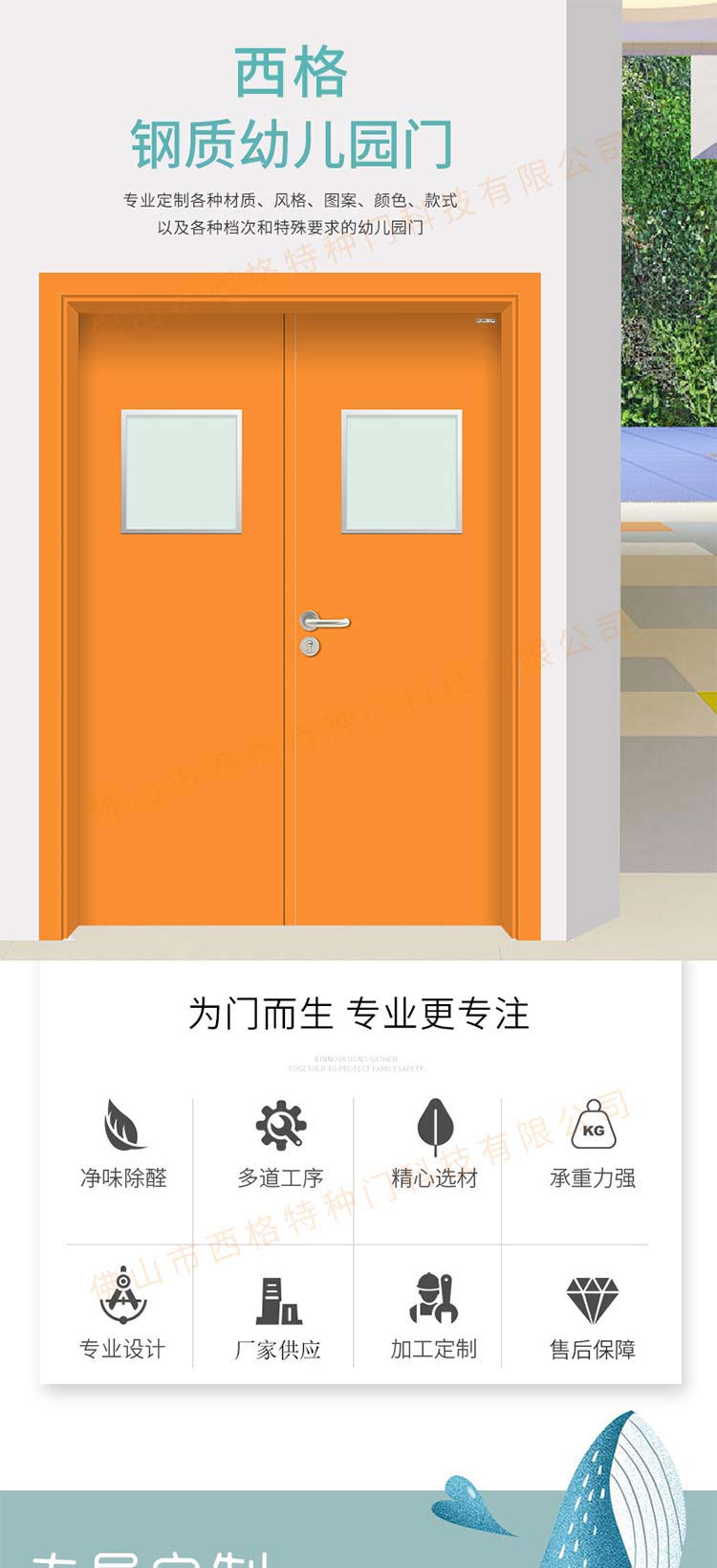 產(chǎn)品簡介:chnsige西格特種門,專業(yè)生產(chǎn)幼兒園門,幼兒園鋼質(zhì)門,鋼質(zhì)幼兒園門,多鐘款式、顏色,尺寸可定制。