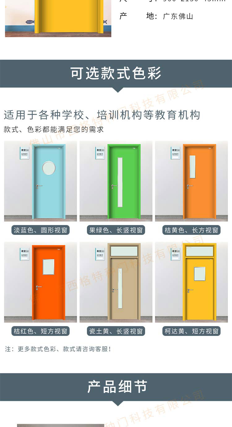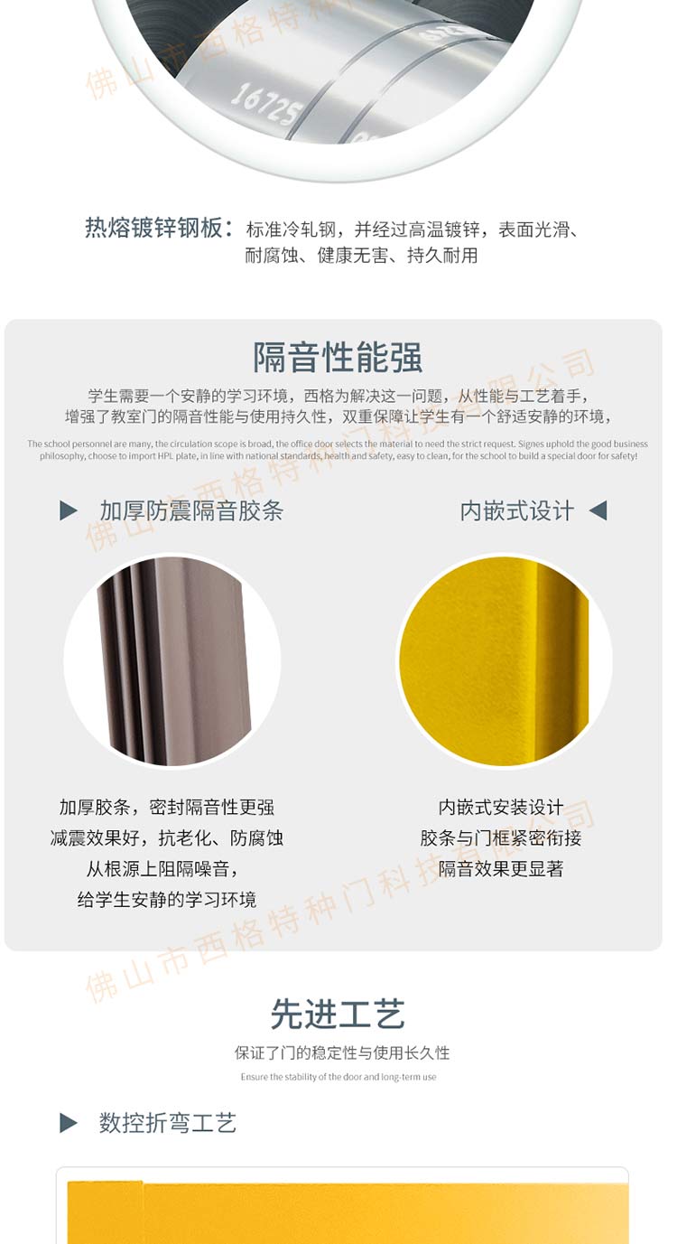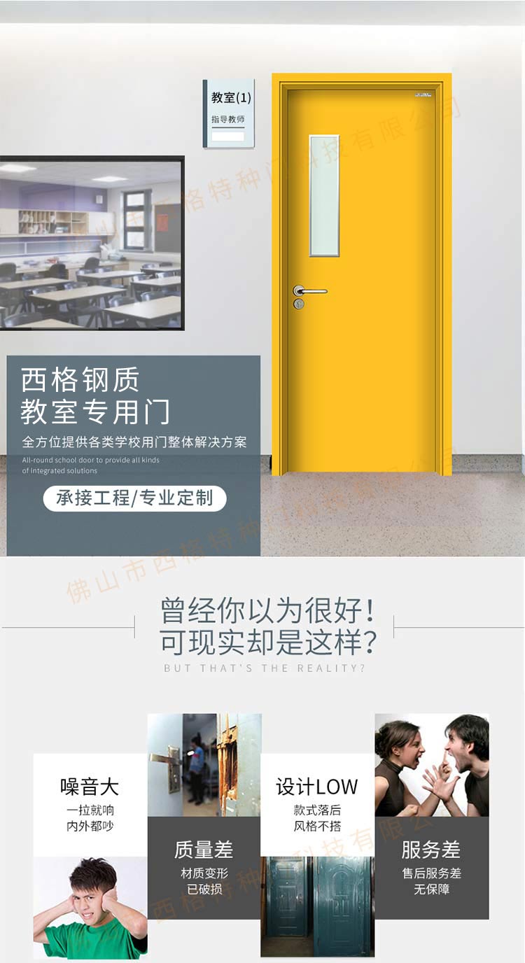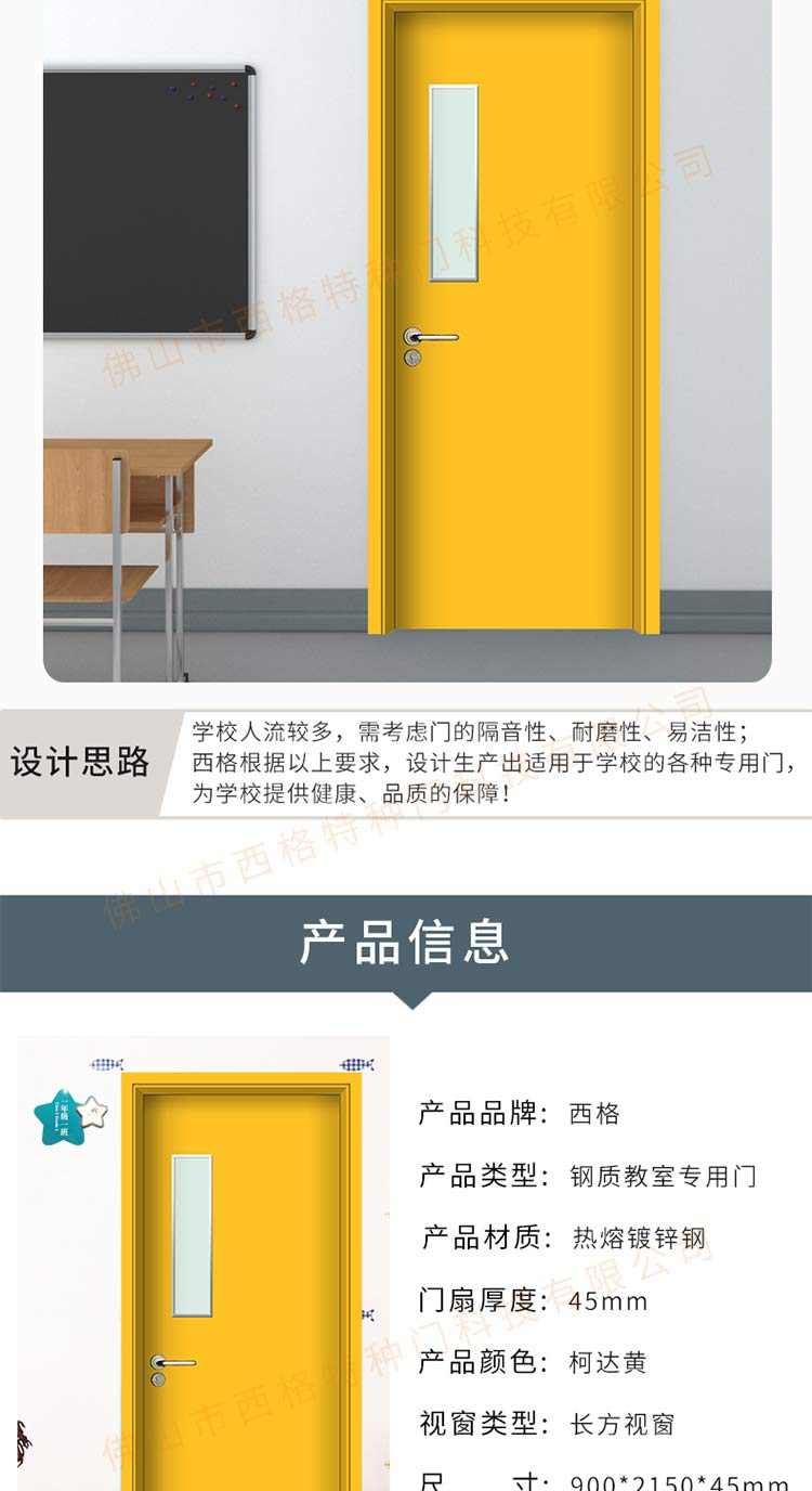 產品簡介:chnsige西格特種門,專業生產教室門,學校教室門,教室門鋼質門,培訓班門,培訓學校門,多鐘款式、顏色,尺寸可定制。