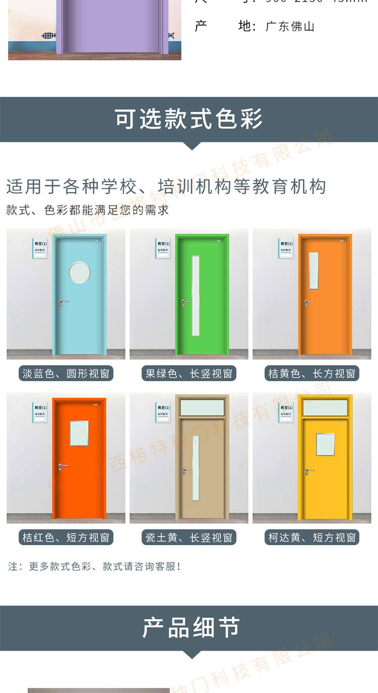 產品簡介:chnsige西格特種門,專業生產教室門,學校教室門,教室門鋼質門,培訓班門,培訓學校門,多鐘款式、顏色,尺寸可定制。
