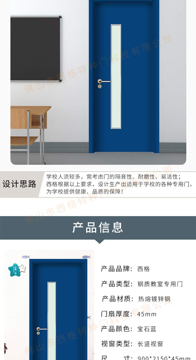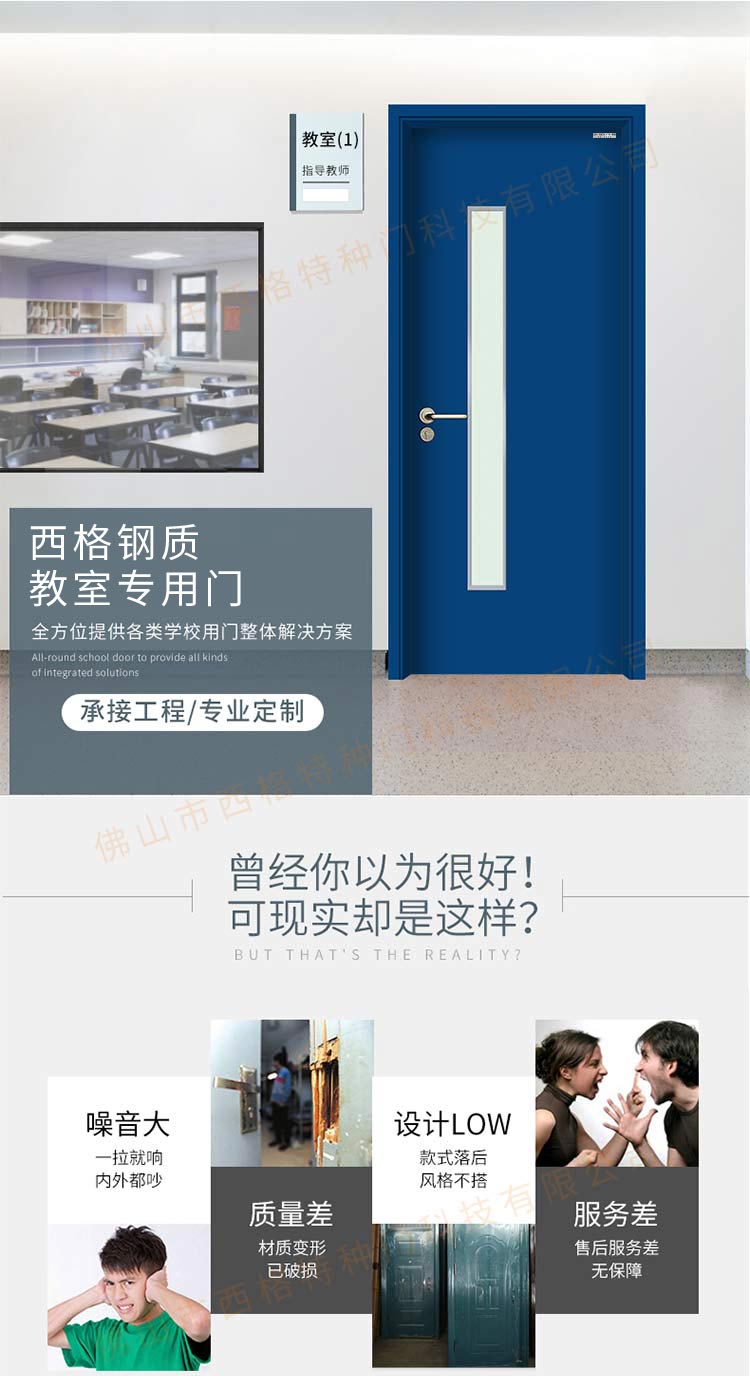 產(chǎn)品簡(jiǎn)介:chnsige西格特種門(mén),專(zhuān)業(yè)生產(chǎn)教室門(mén),學(xué)校教室門(mén),教室門(mén)鋼質(zhì)門(mén),培訓(xùn)班門(mén),培訓(xùn)學(xué)校門(mén),多鐘款式、顏色,尺寸可定制。