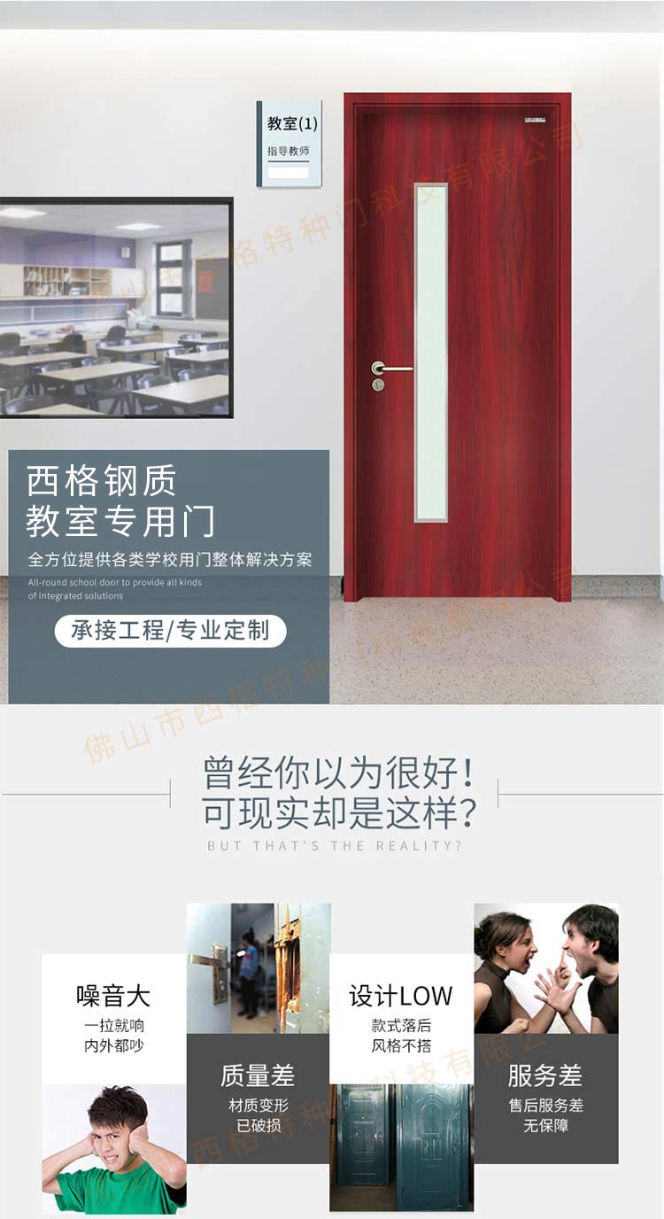 產品簡介:chnsige西格特種門,專業生產教室門,學校教室門,教室門鋼質門,培訓班門,培訓學校門,多鐘款式、顏色,尺寸可定制。