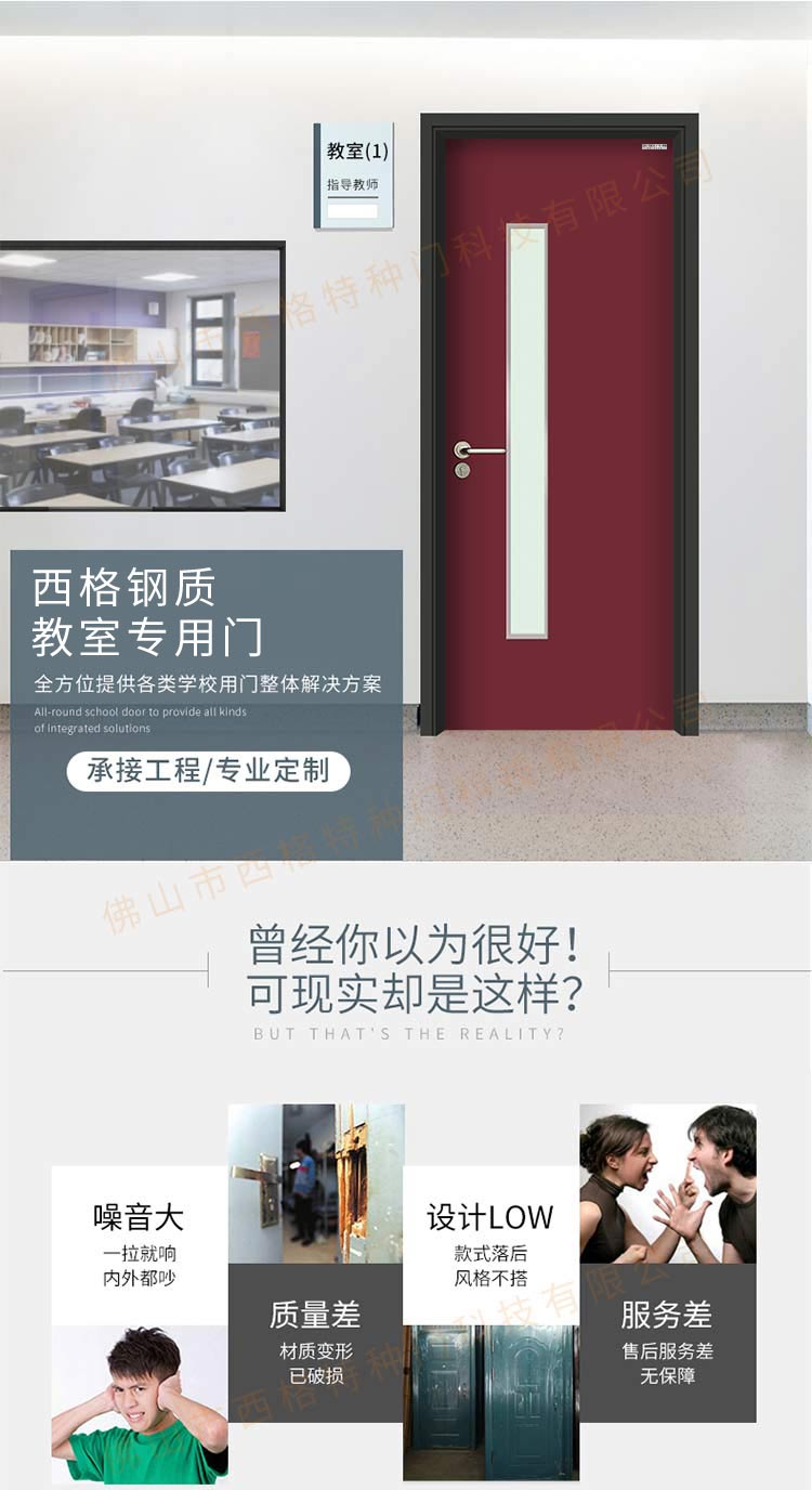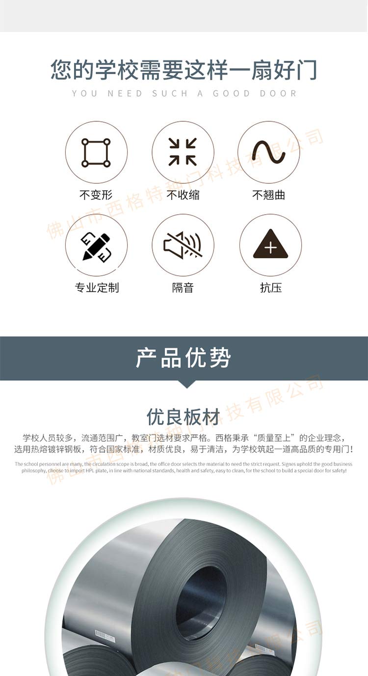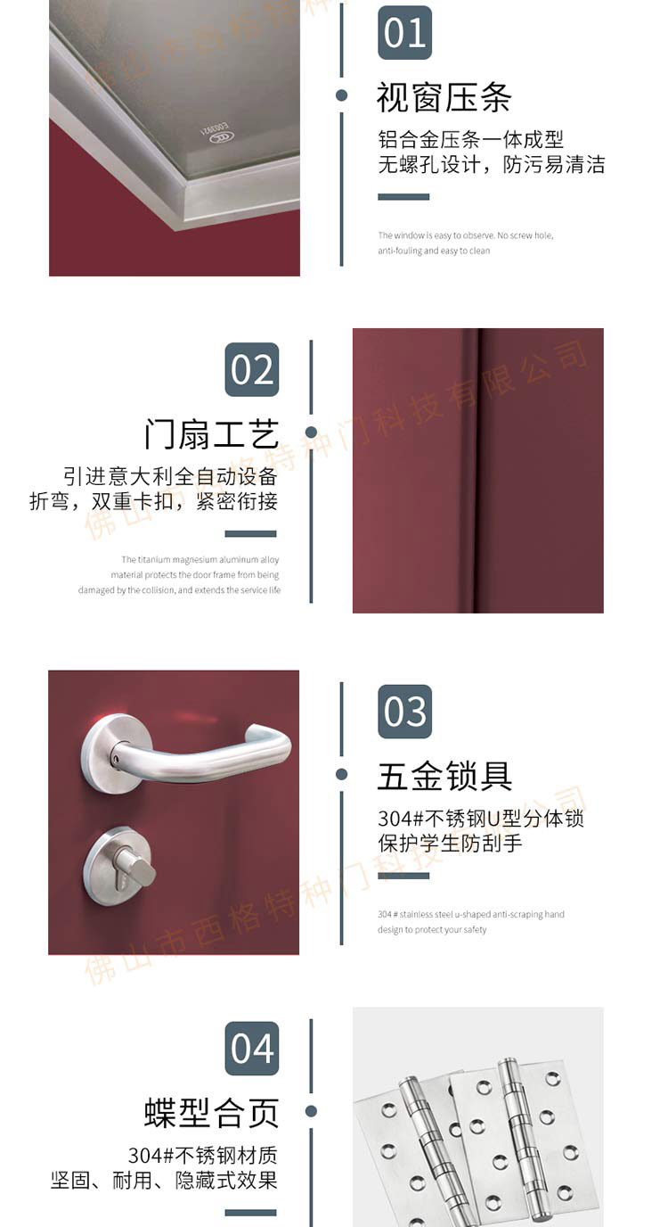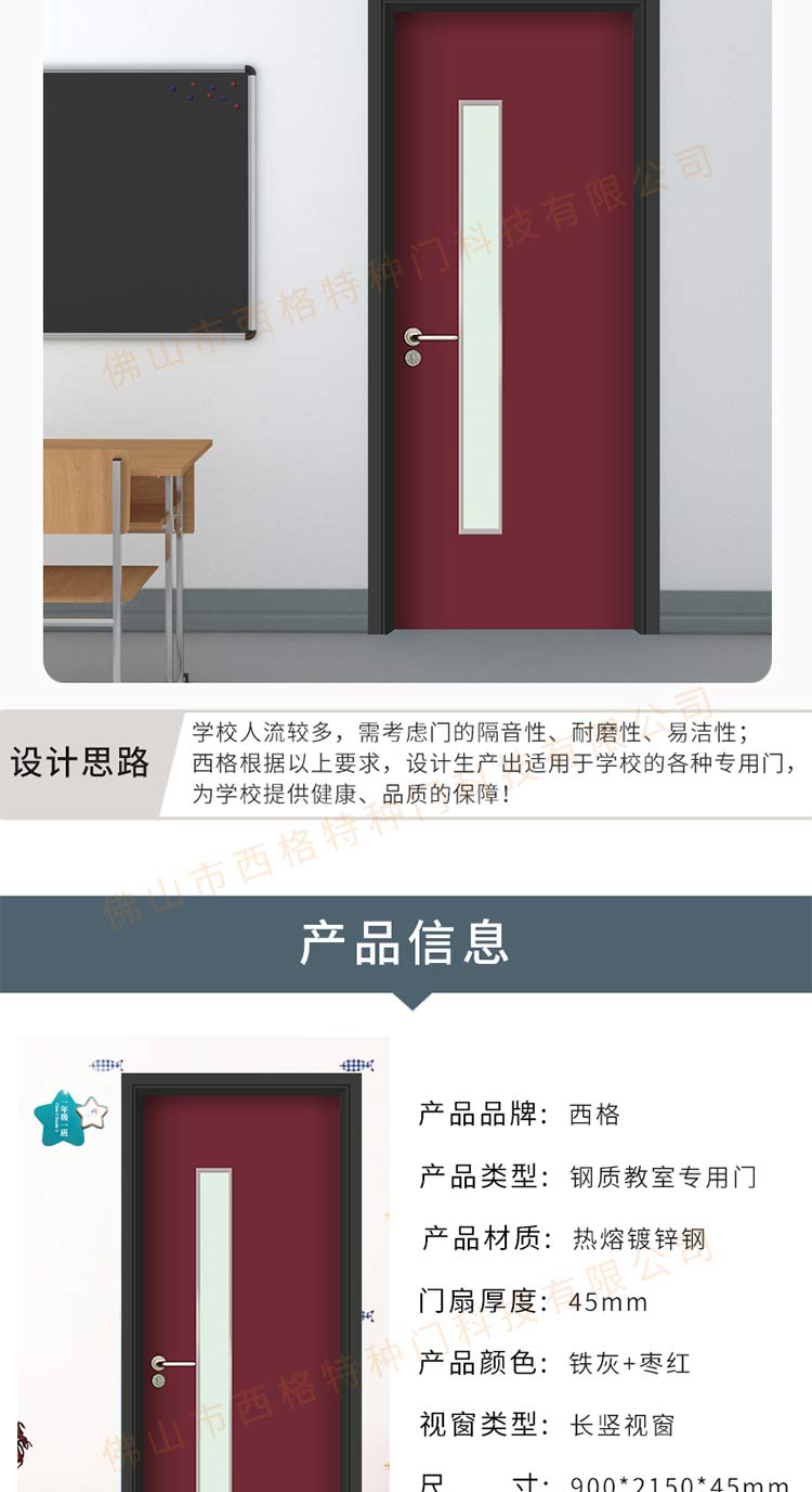 產品簡介:chnsige西格特種門,專業生產教室門,學校教室門,教室門鋼質門,培訓班門,培訓學校門,多鐘款式、顏色,尺寸可定制。