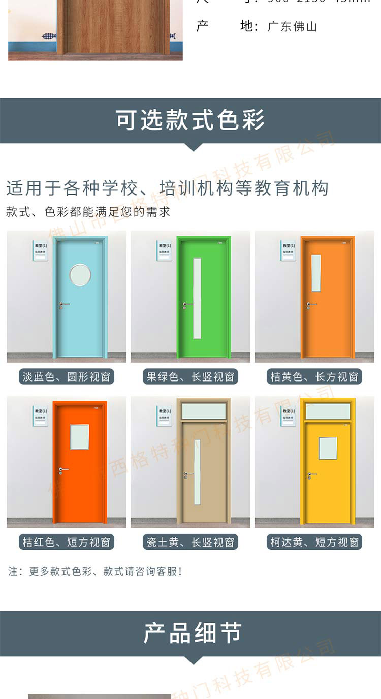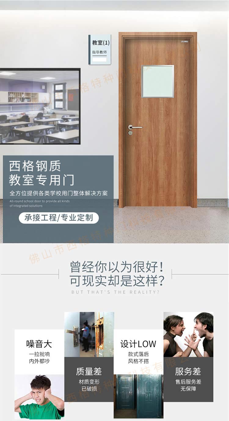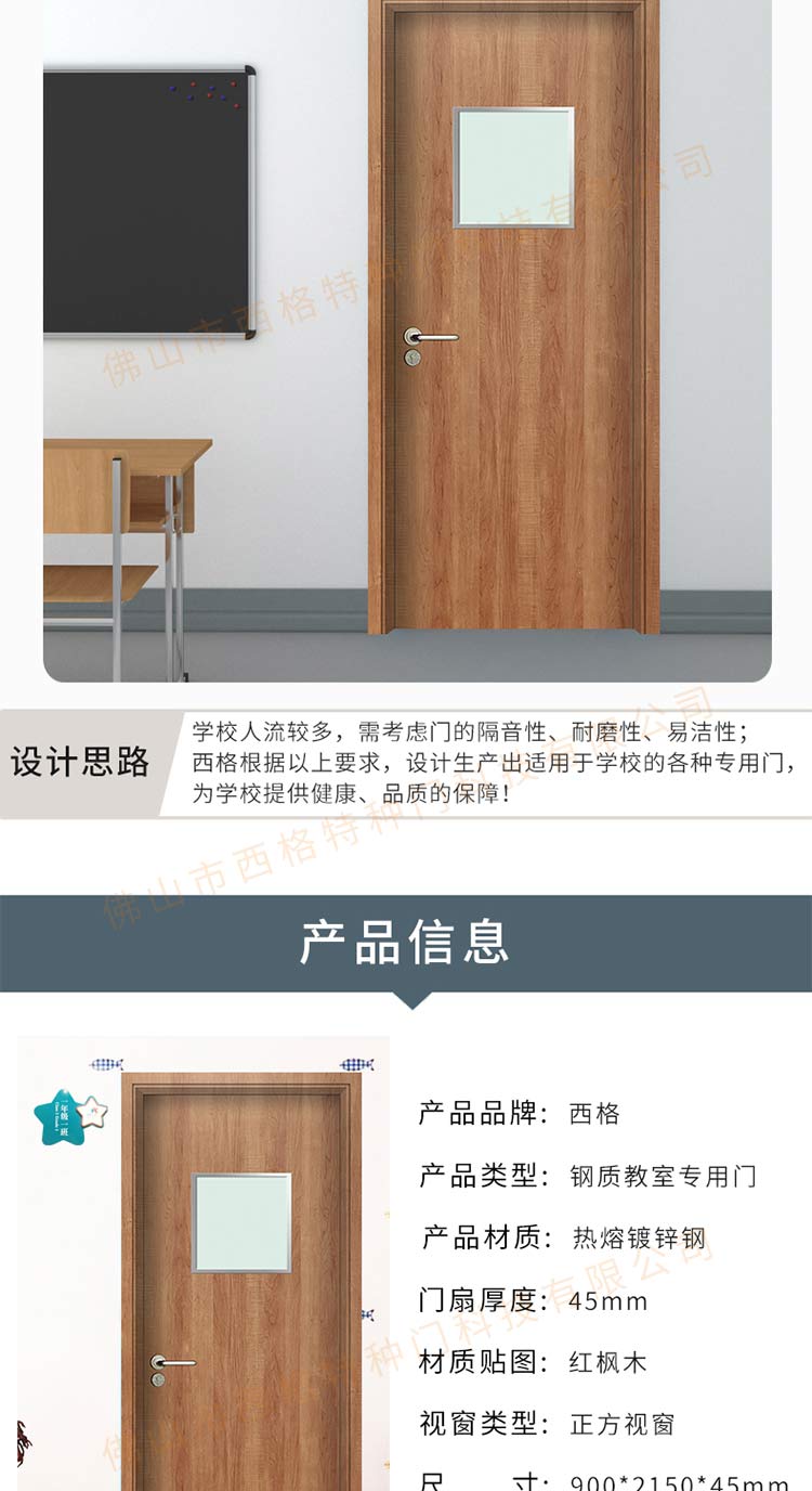 產品簡介:chnsige西格特種門,專業生產教室門,學校教室門,教室門鋼質門,培訓班門,培訓學校門,多鐘款式、顏色,尺寸可定制。