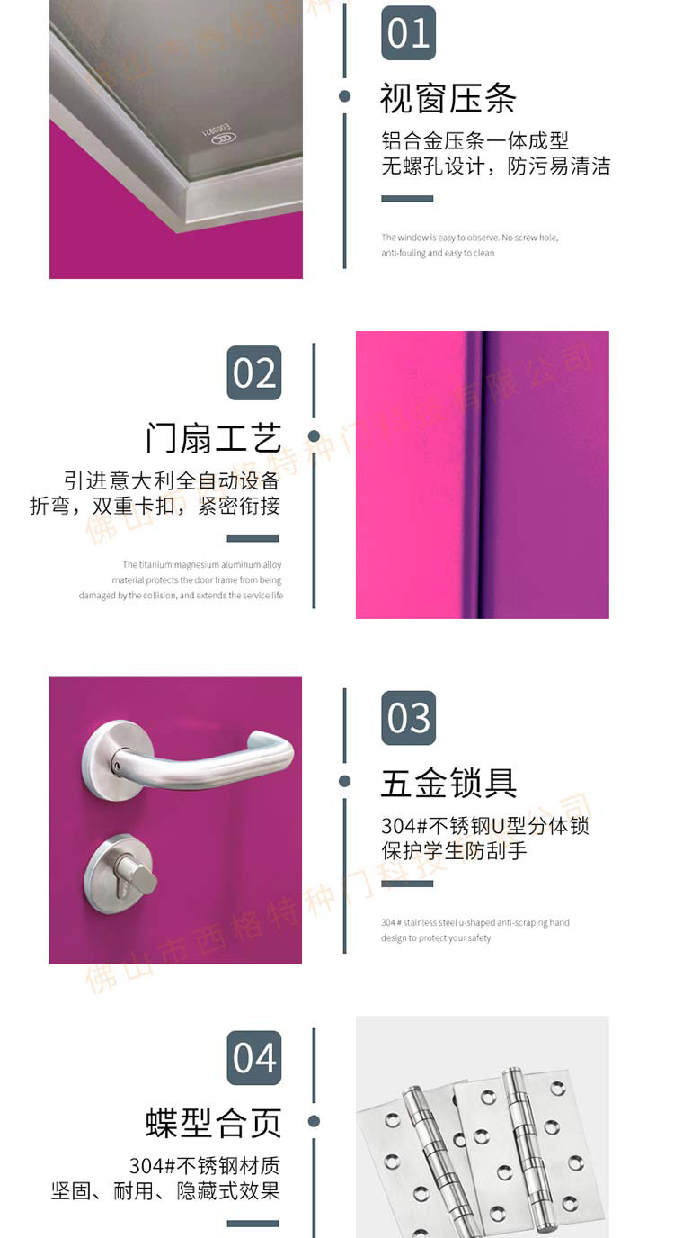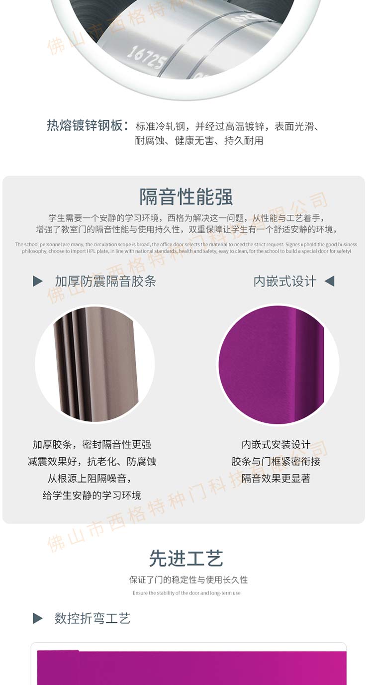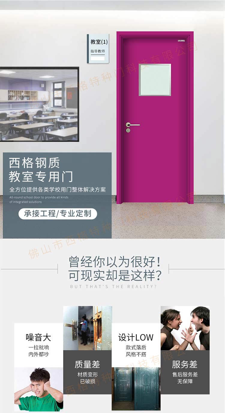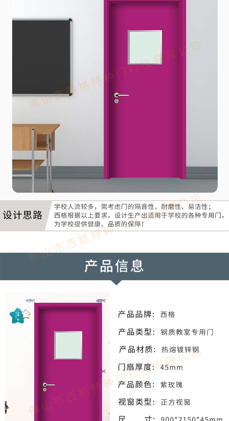 產品簡介:chnsige西格特種門,專業生產教室門,學校教室門,教室門鋼質門,培訓班門,培訓學校門,多鐘款式、顏色,尺寸可定制。
