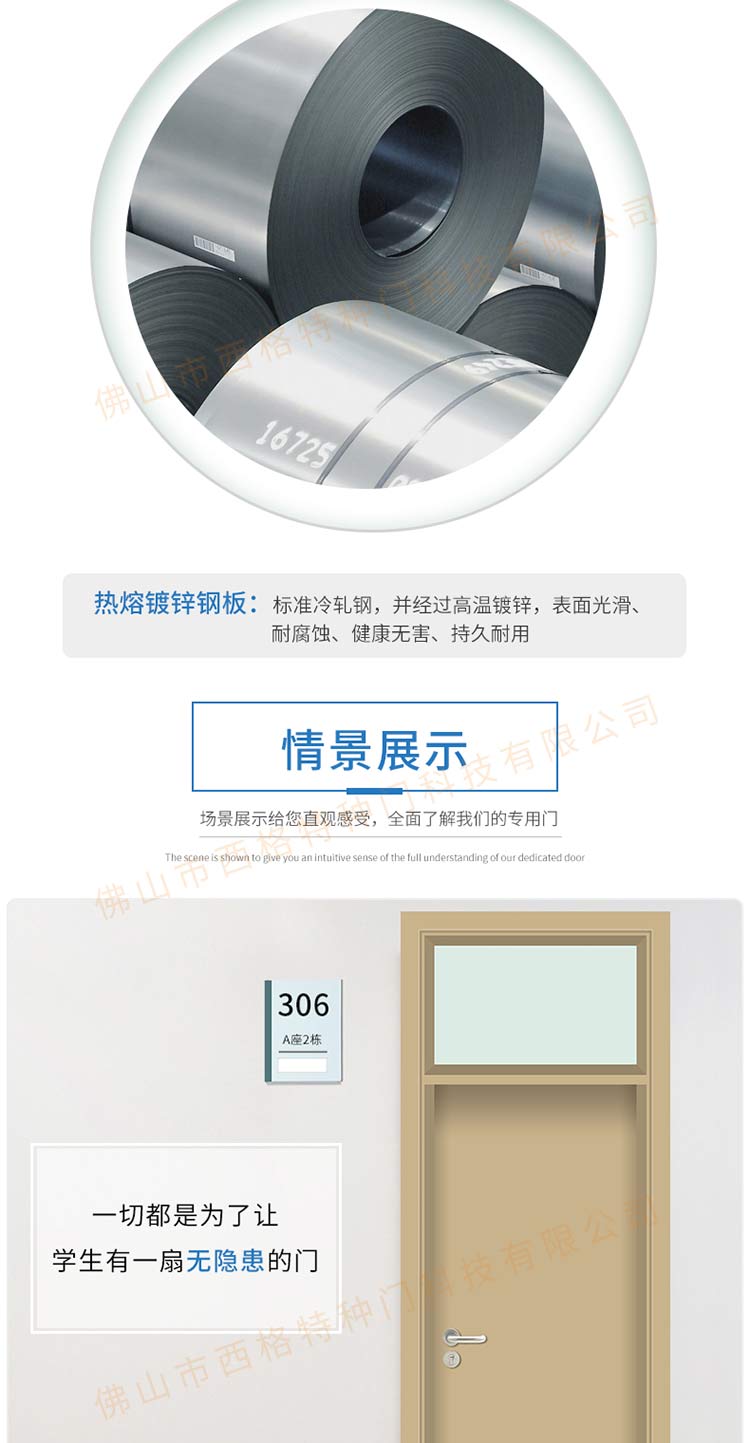 產品簡介:chnsige西格特種門,專業生產學校門,學校教室門,學校辦公室門,學校鋼質門,鋼質學校門,多鐘款式、顏色,尺寸可定制。