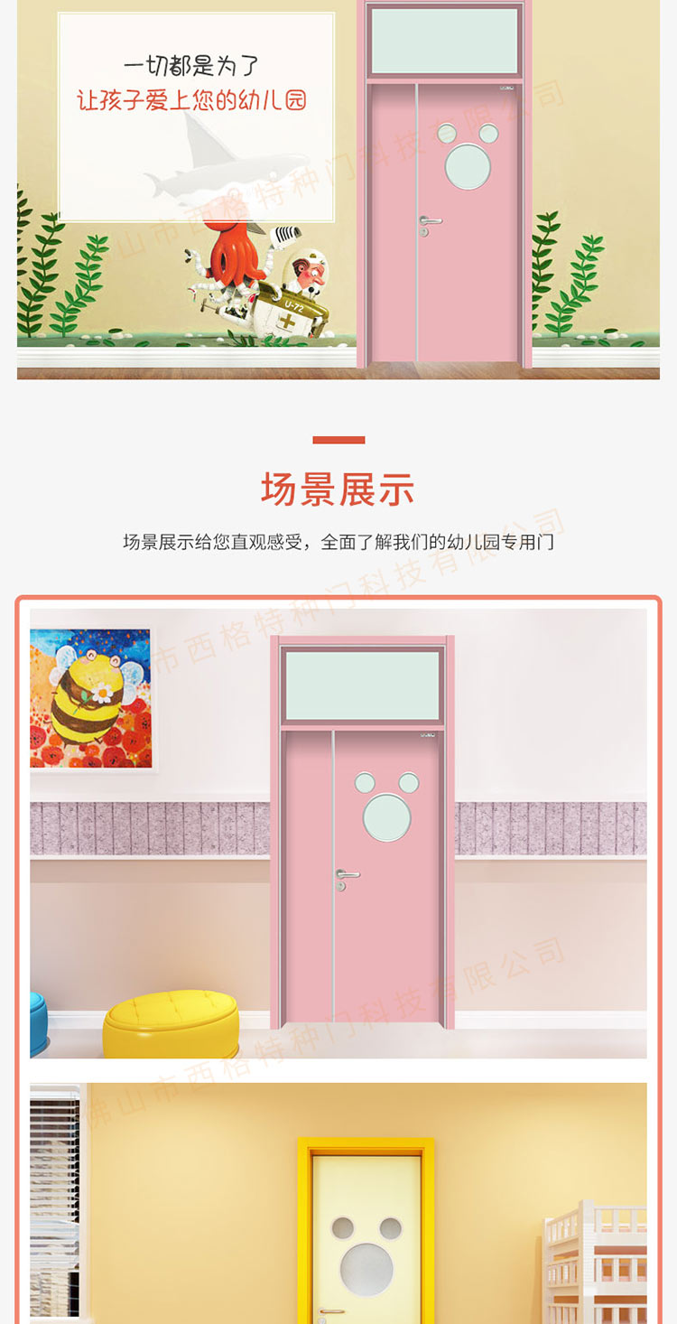 產品標題:幼兒園教室子母門_玻璃上亮卡通門