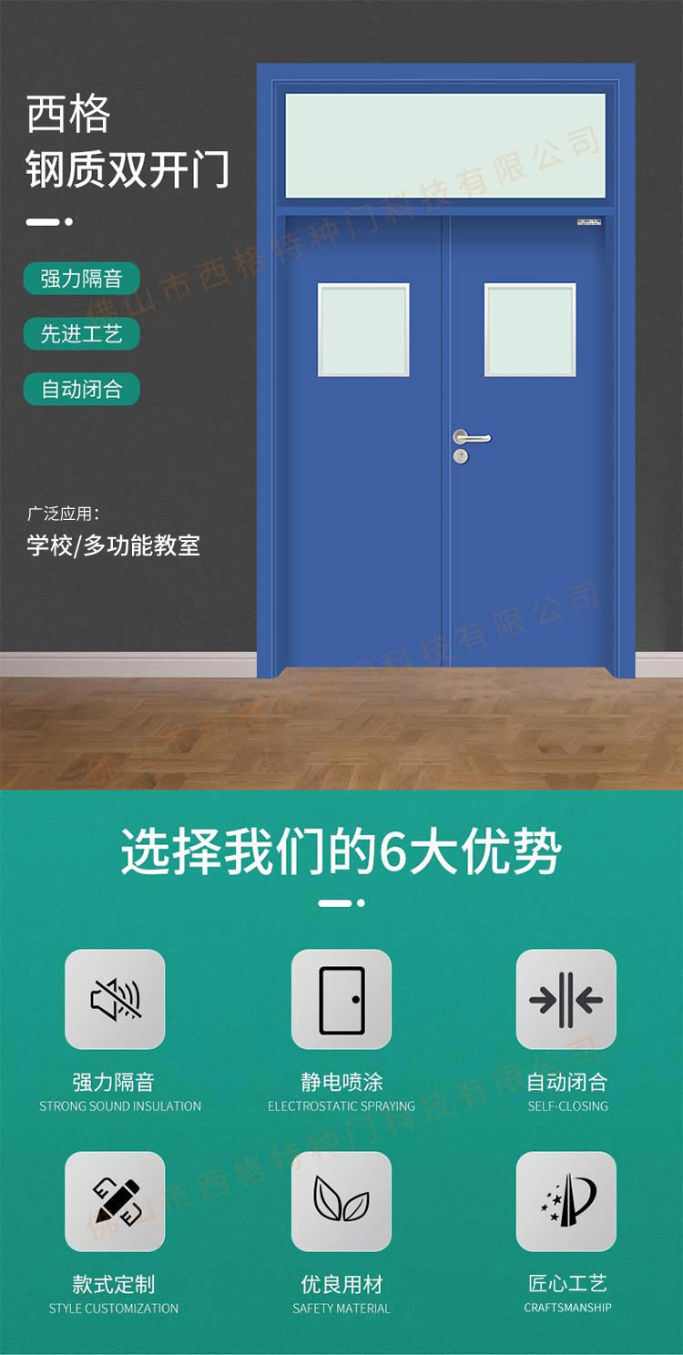 產品簡介:chnsige西格特種門,專業生產學校門,學校教室門,學校辦公室門,學校鋼質門,鋼質學校門,多鐘款式、顏色,尺寸可定制。