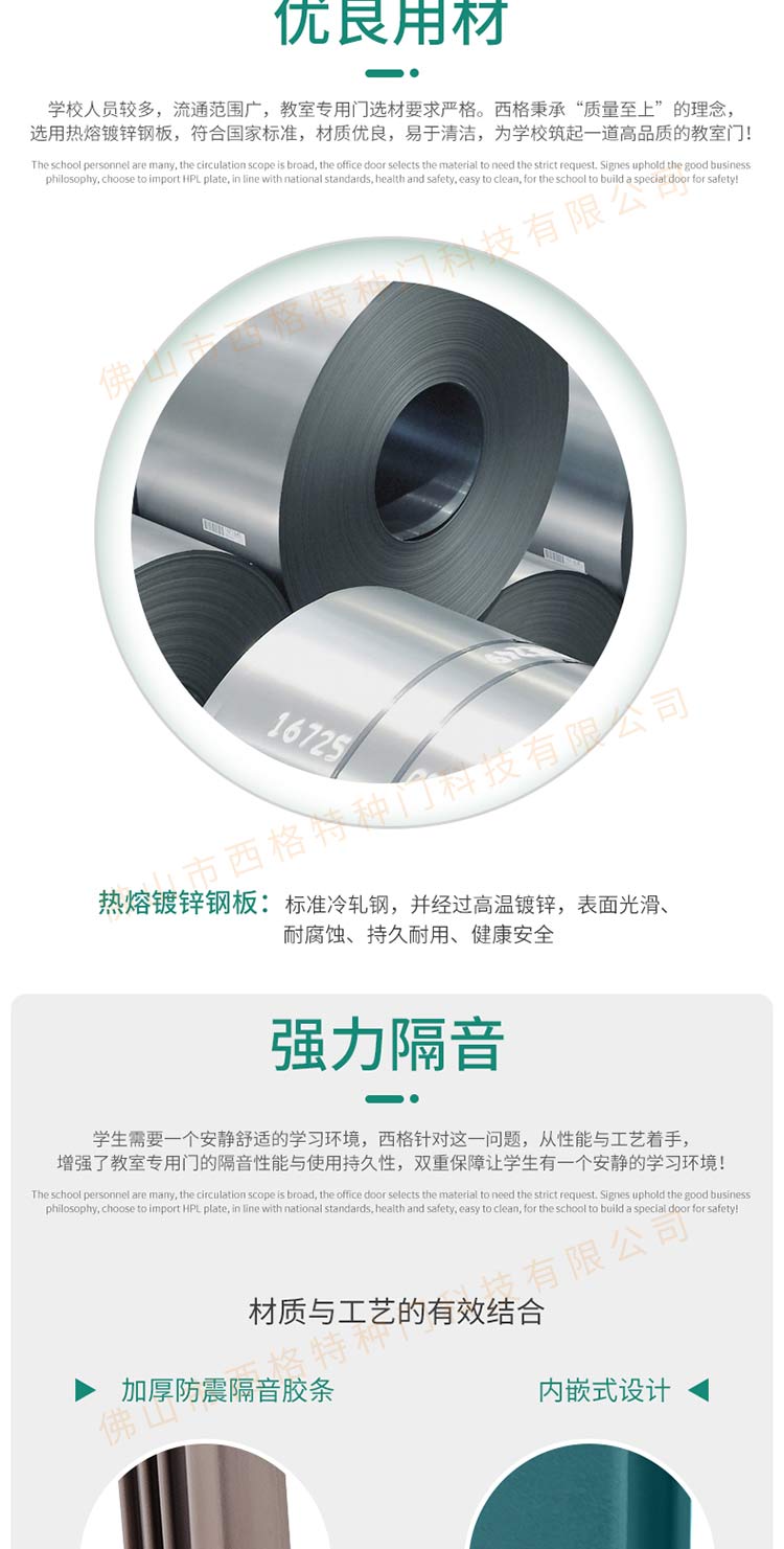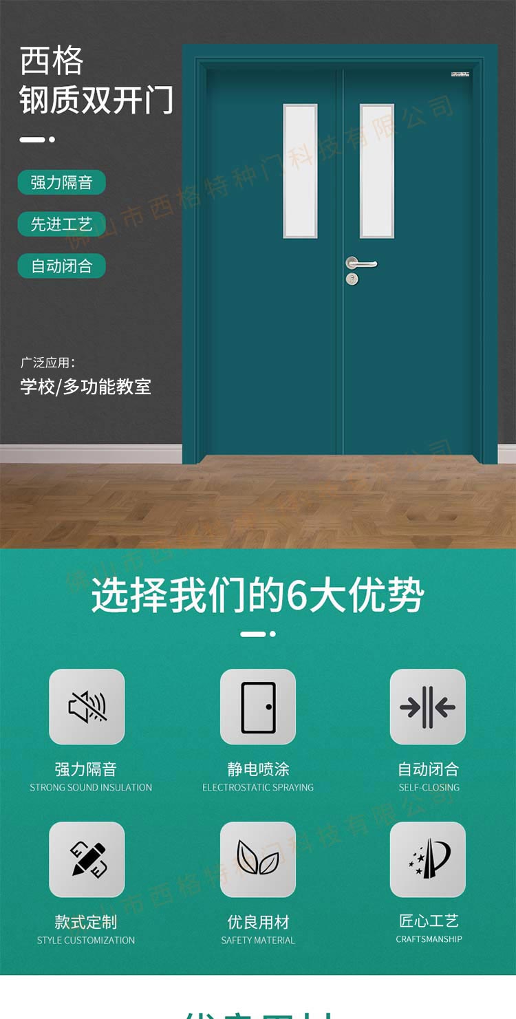 產品簡介:chnsige西格特種門,專業生產學校門,學校教室門,學校辦公室門,學校鋼質門,鋼質學校門,多鐘款式、顏色,尺寸可定制。