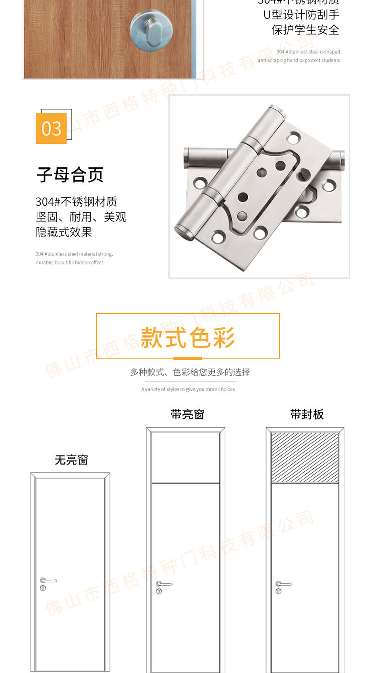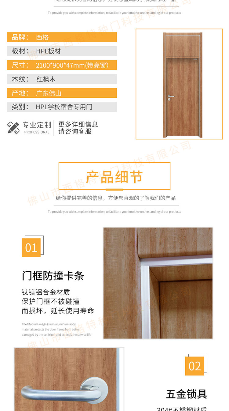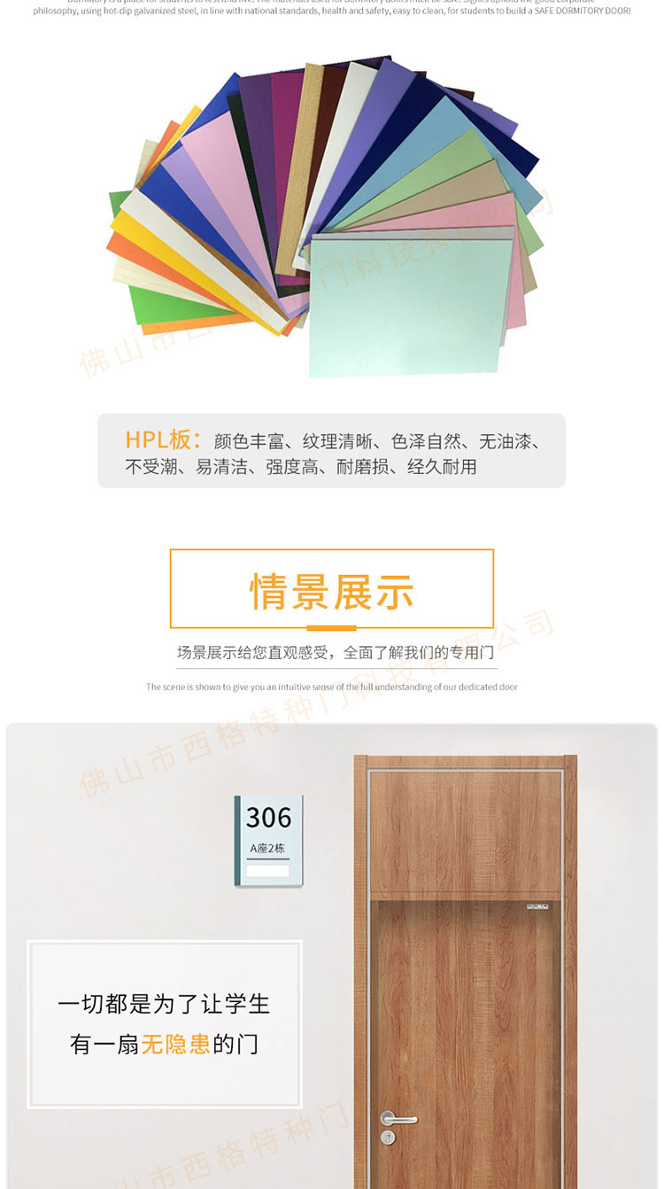 產品簡介:chnsige西格特種門,專業生產學校宿舍門,木質學校宿舍門,學校宿舍木門,學生宿舍門,多鐘款式、顏色,尺寸可定制。