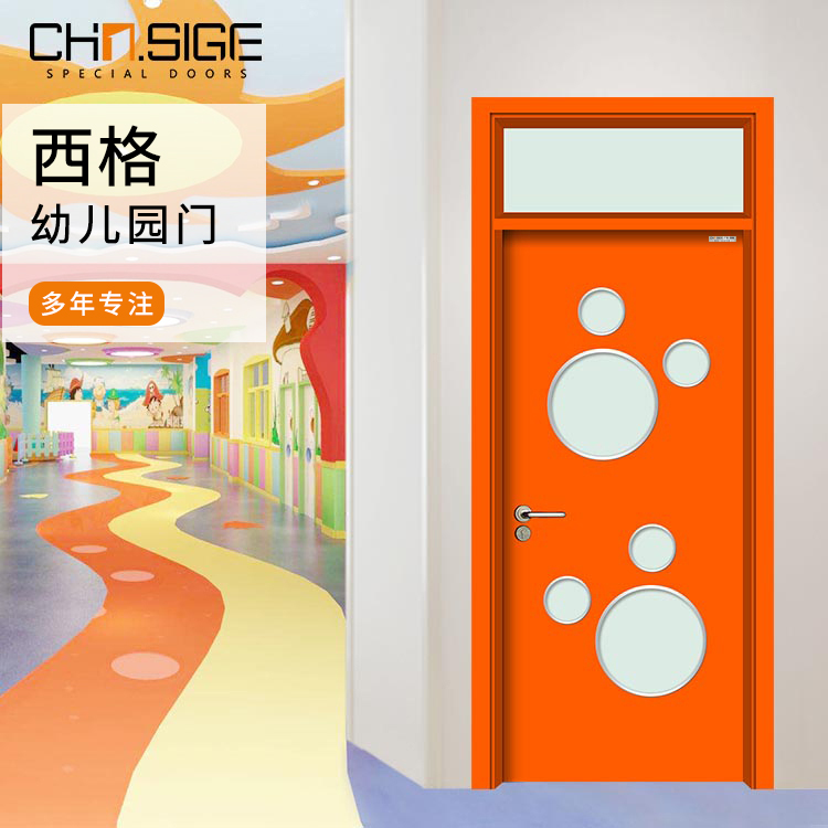 西格鋼質(zhì)幼兒園門門扇表面工藝有2種,分別是靜電噴涂和覆膜。