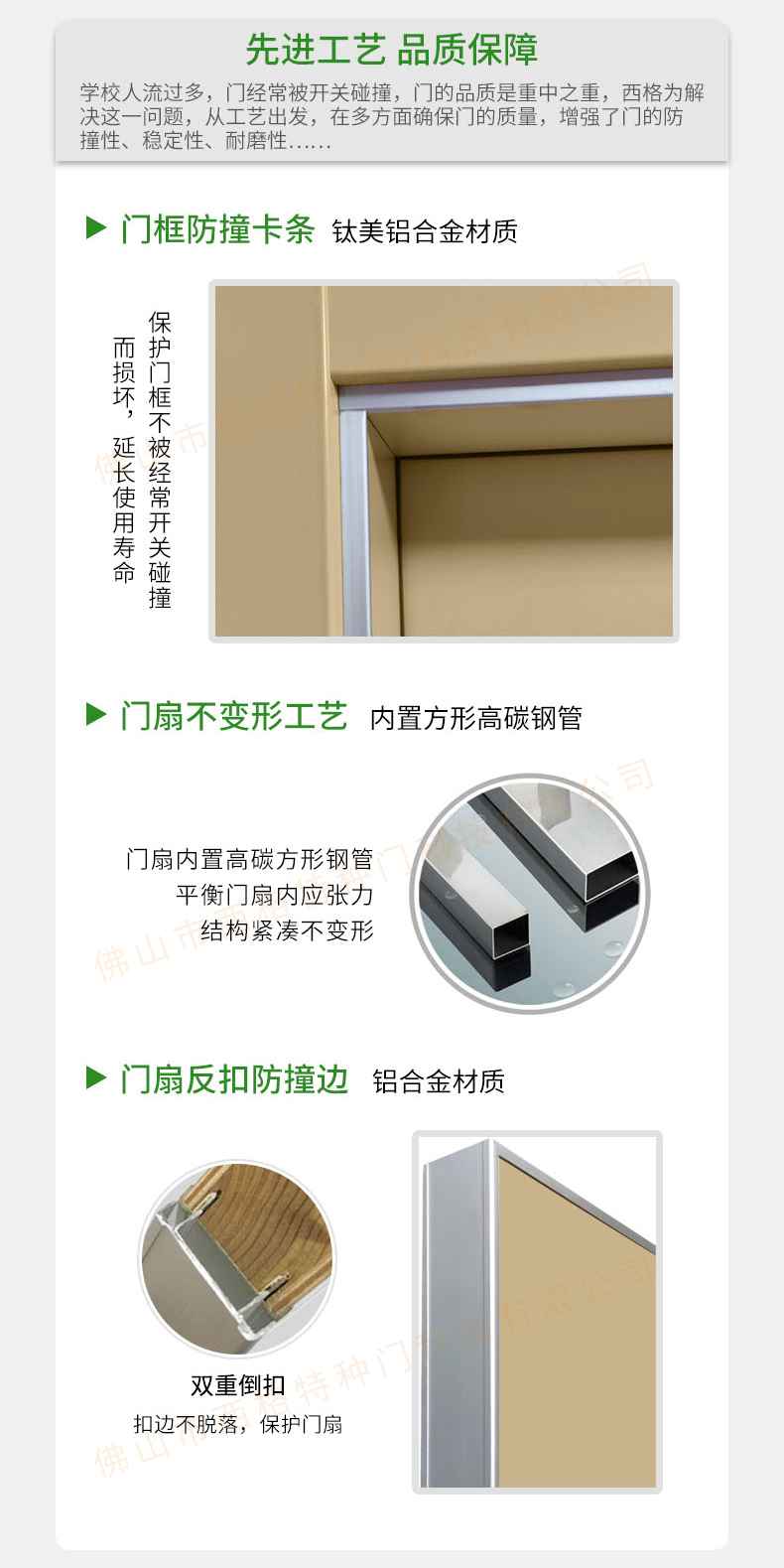 在門框容易發生碰撞的邊角位置添加鋁合金防撞卡條,保護門框,提升門框的防撞能力,從而延長門框的壽命。