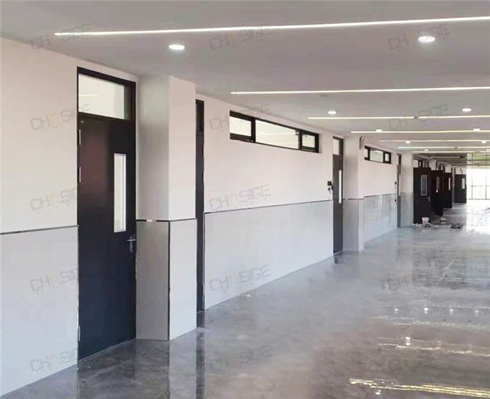 考慮到學校門會經常受到碰撞,校方采用堅固耐碰撞的鋼質門,以延長其使用壽命,其次,西格根據極具美學的空間設計,將色彩與布局完美融合,在寬敞的走廊里,采用大氣穩重的深灰色,營造一種讓人沉穩安寧的學習氛圍。